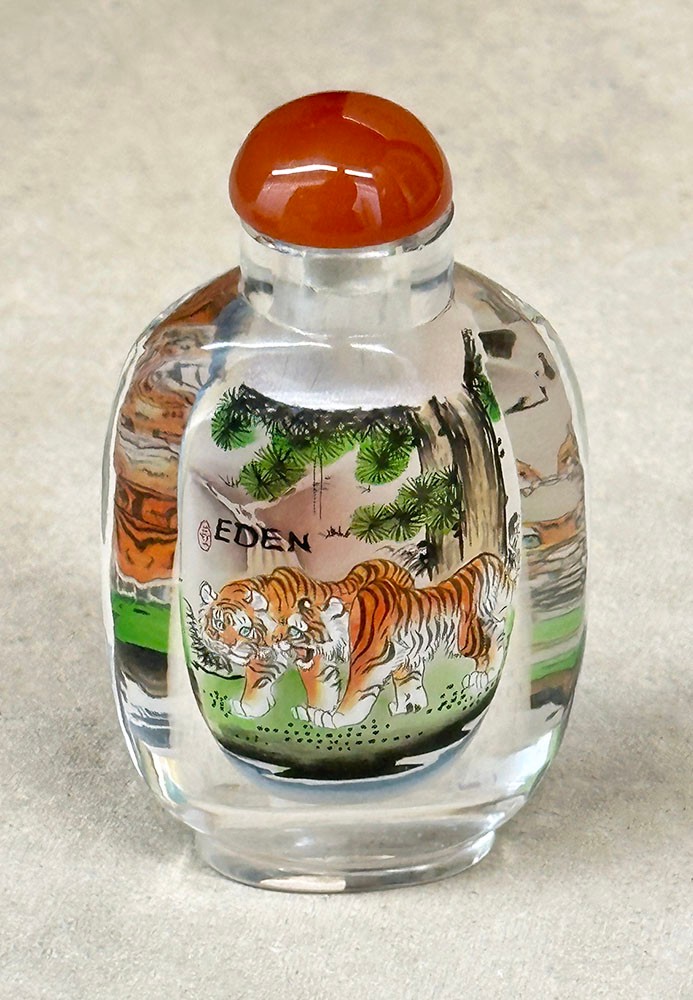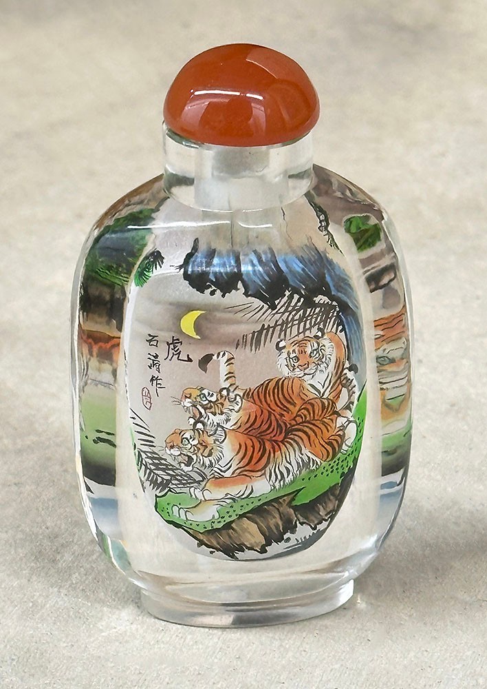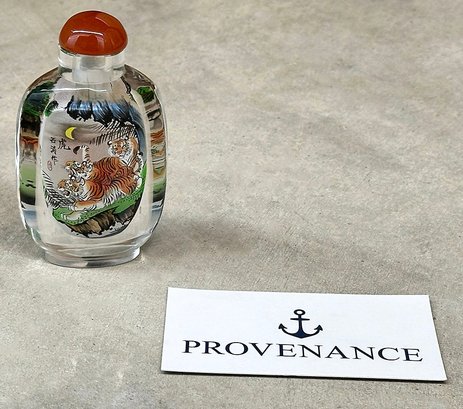 Vintage Chinese Reverse Painted Crystal Snuff Bottle. 3.75" Tall. In Excellent Condition.