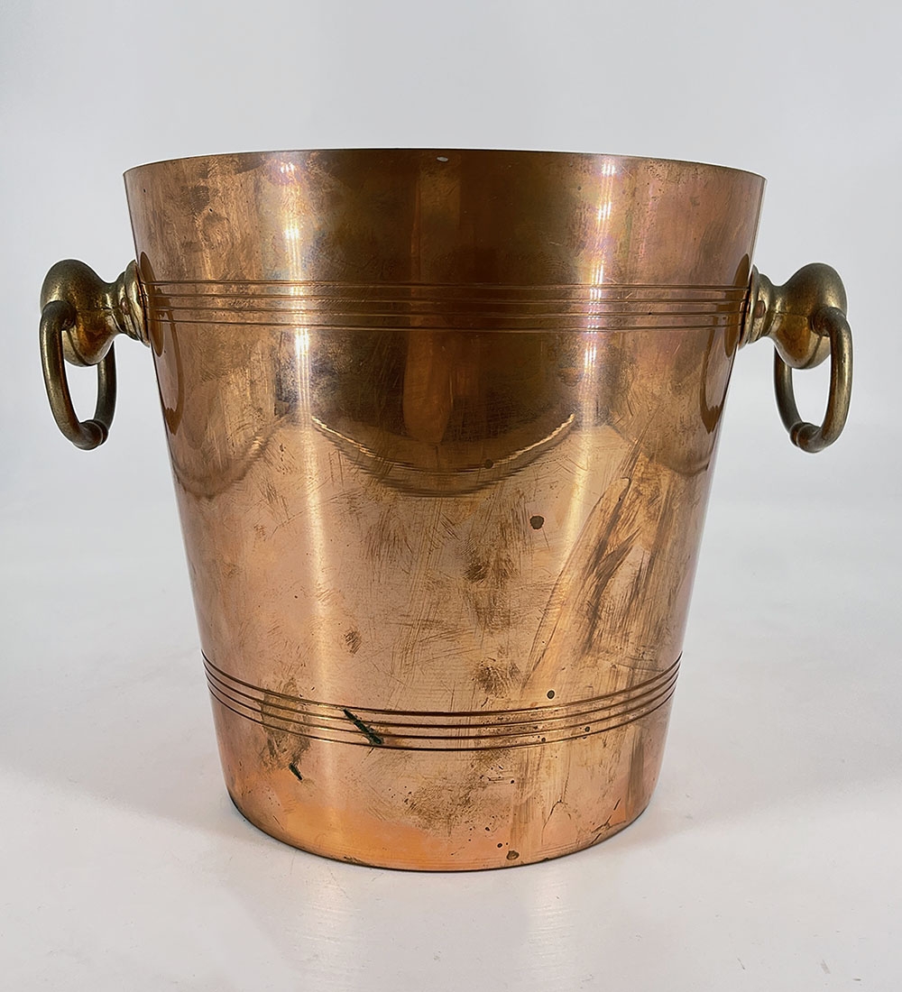 Measurements: 8"diameter (10.5" w/ handles), 8" Tall. In Good Overall Condition with some wear from age and use.