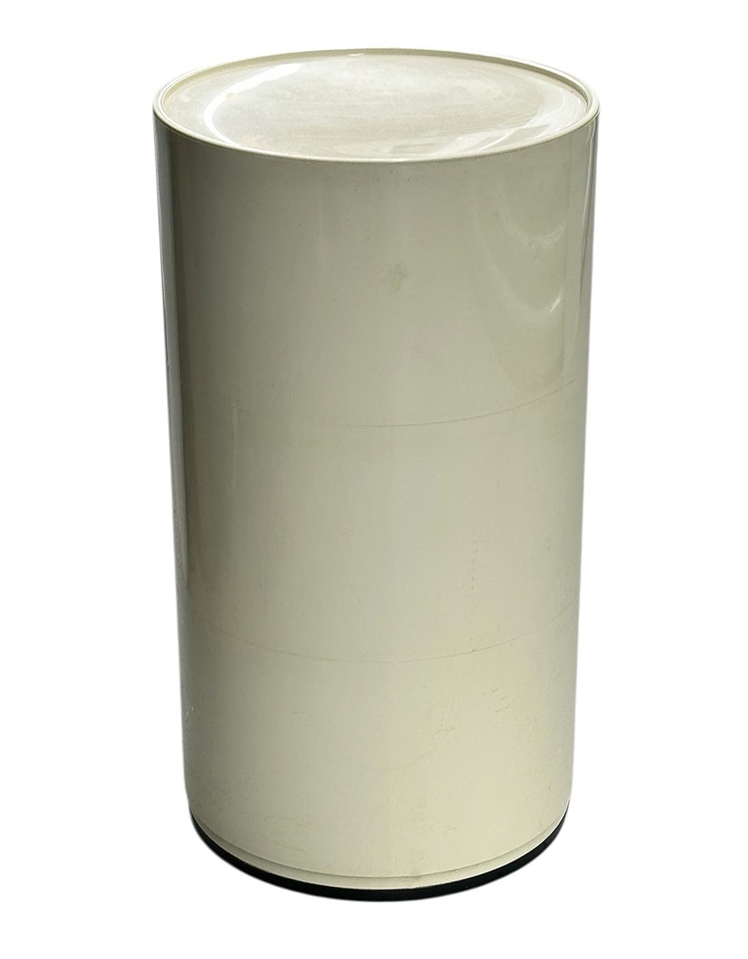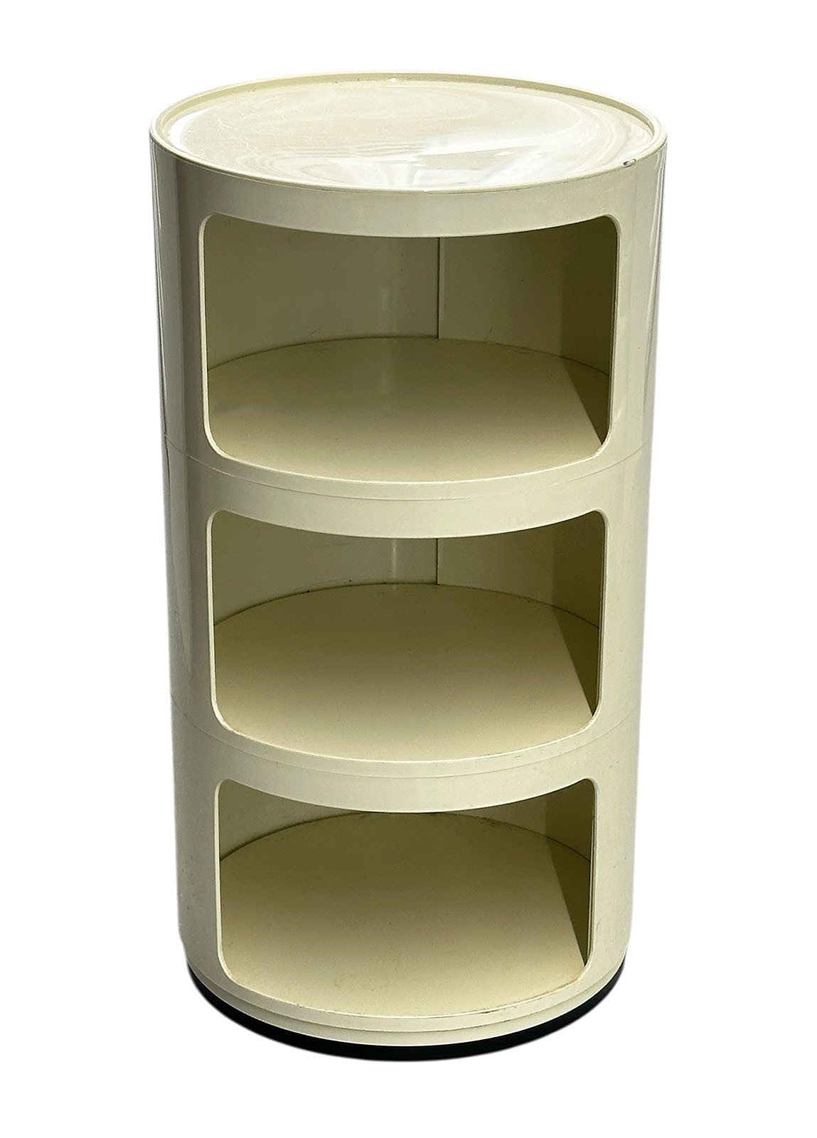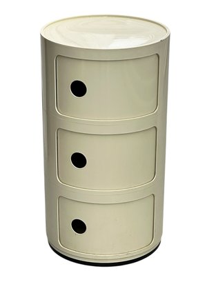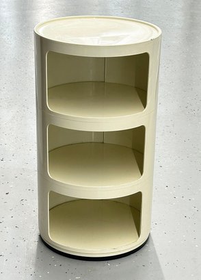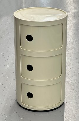 Vintage Kartell Componibili Stacking 3-Compartment Storage Cabinet By Anna Castelli. In Off White. Some wear and marks. 12.5" diameter, 23" Tall. Timeless modern design and still in production.