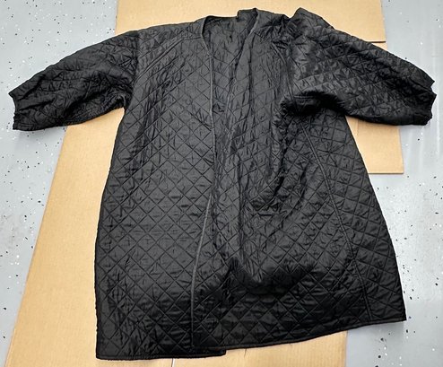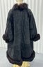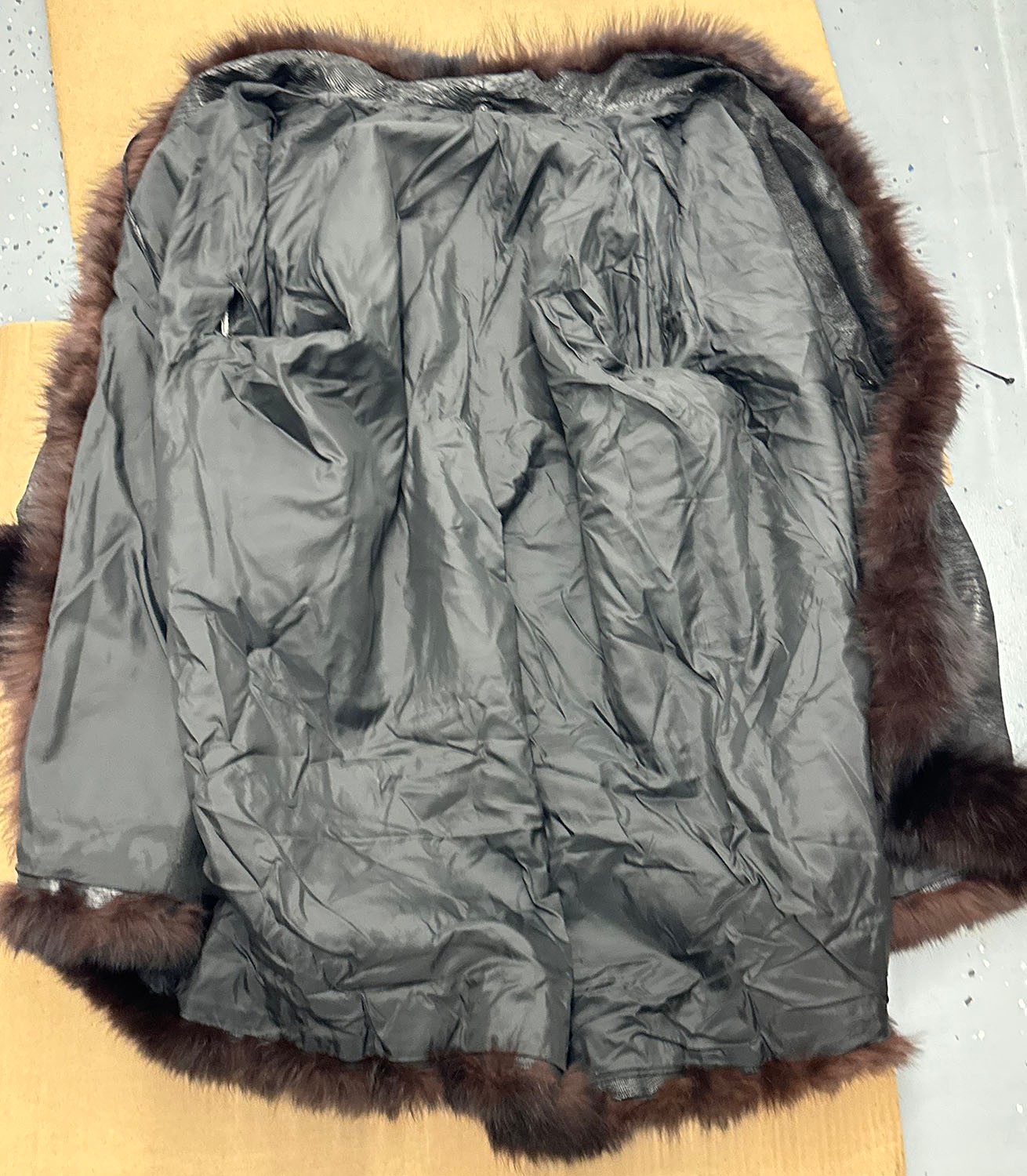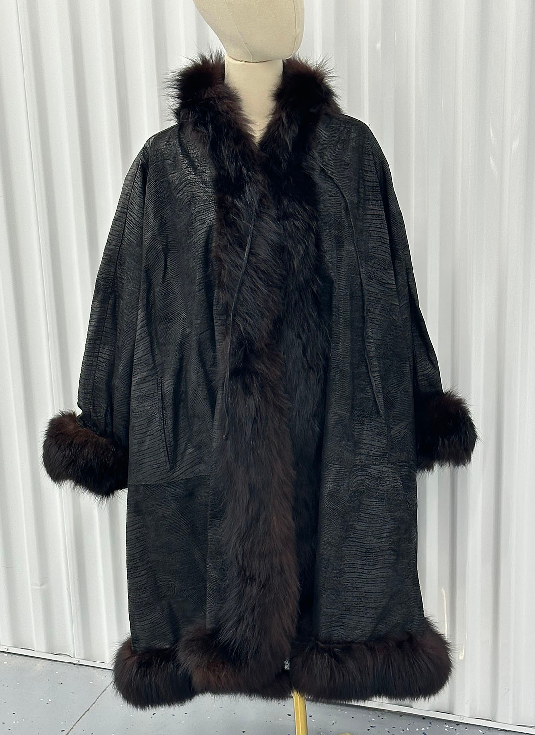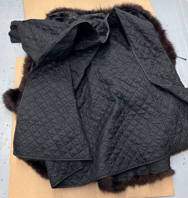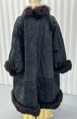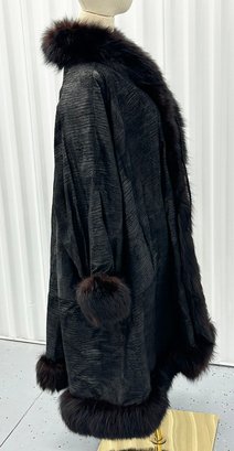 Vintage Leather And Fox Cape. With Removable pleaded Warm Inner Lining. In Very Good Condition. Measurements: 24" (shoulder to cuff) / 40" (back of collar to hem) / 25" (underarm to underarm)