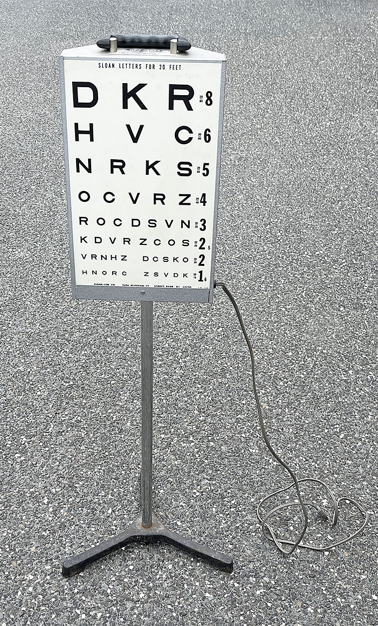 Vintage Good-Lite Lighted Eye Chart With Stand - Visual Acuity Chart (Translucent Model A). From a retired Optometrist. Great conversation piece. In Very Good working and cosmetic condition