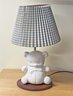 Vintage NoJo Children's Teddy Bear Lamp By Noel Joanna - Made In California. With the original box. Porcelain Bear on a wooden base. 21" Tall. In Good Condition.