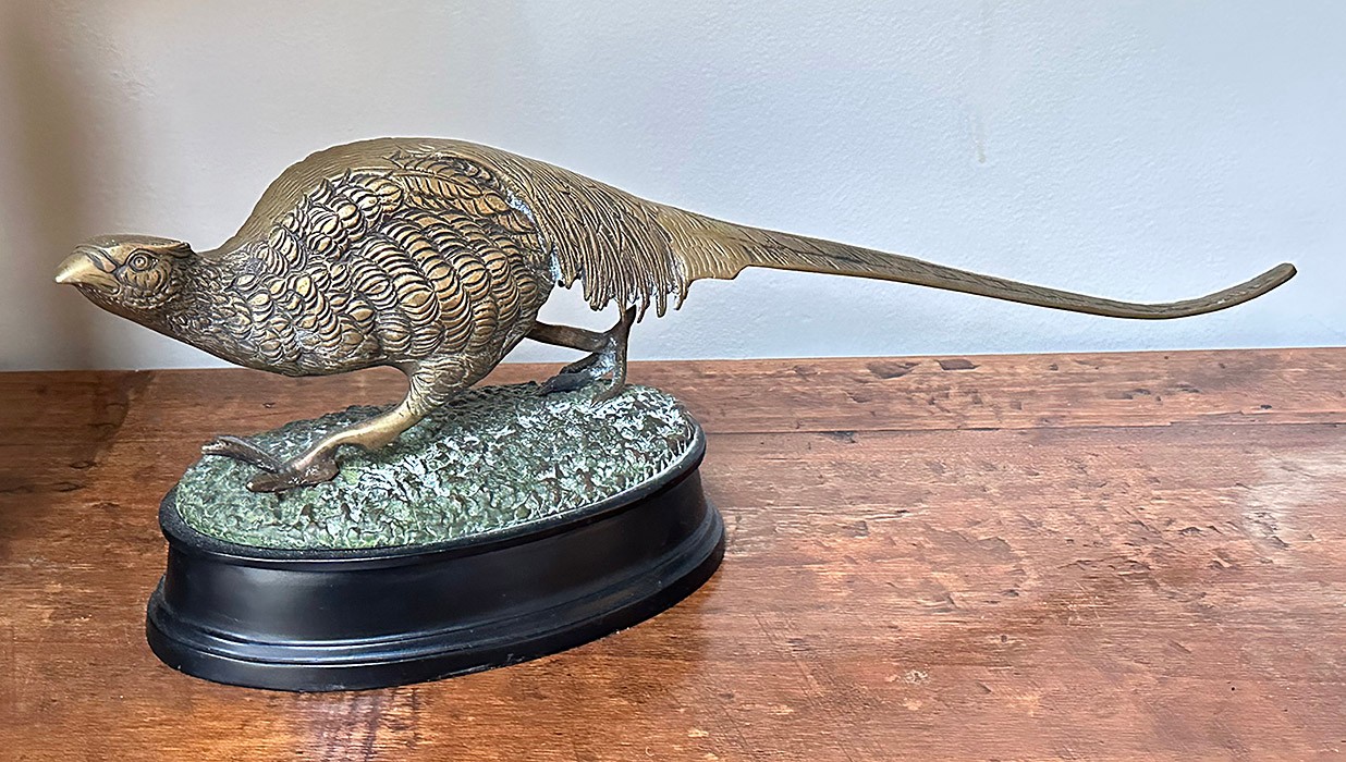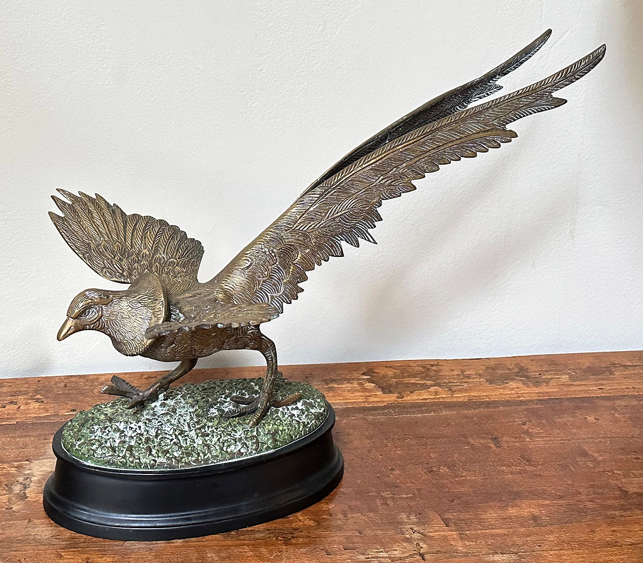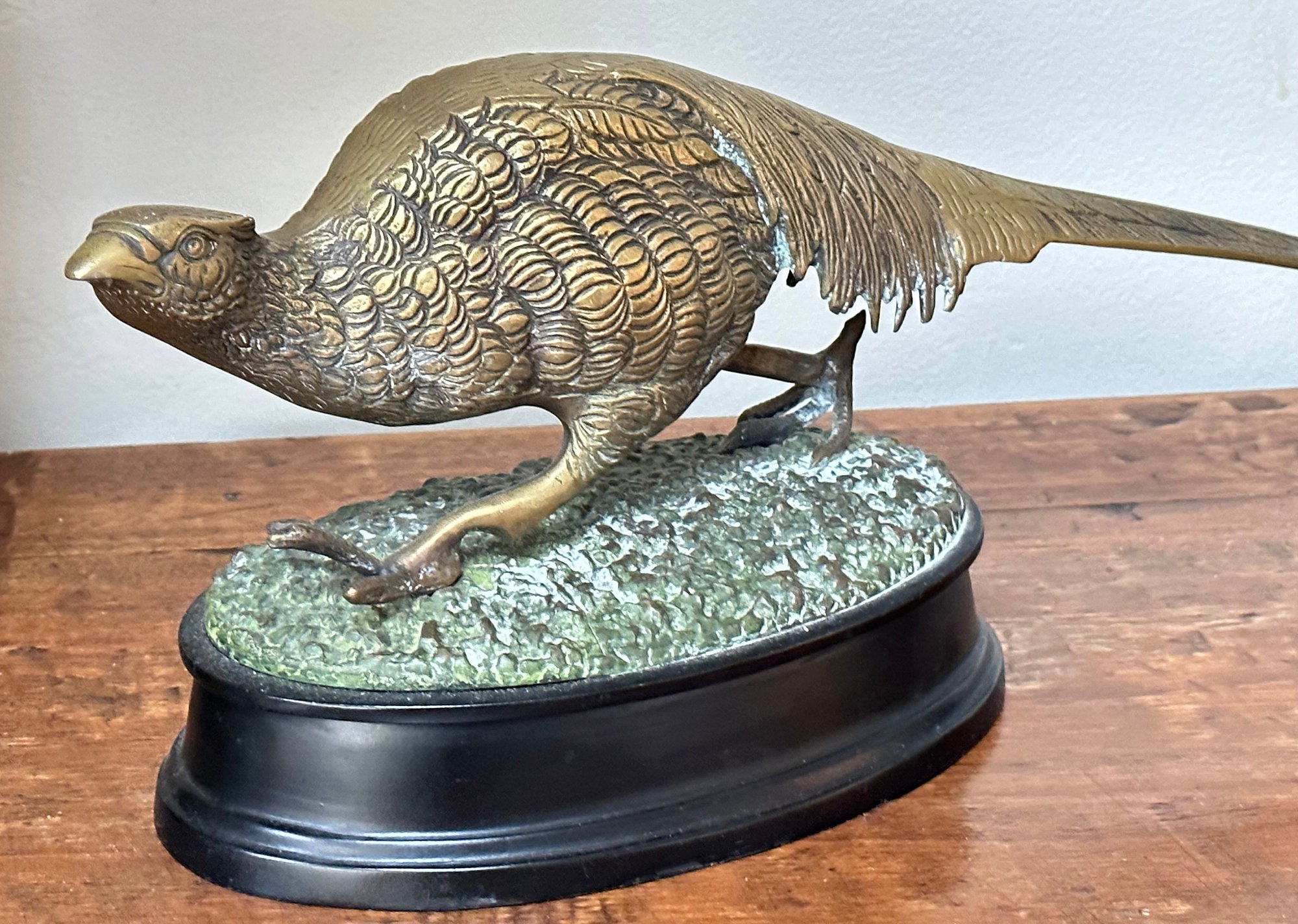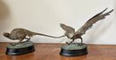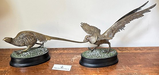 Vintage Pair Of Castilian Brass Pheasant Sculptures. In Very Good Condition. 19" x 8"h and 15.5" x 12"h