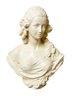 An elegant bust of a young woman with ringlets. Circa Mid-20th C. Made from plaster with a semi gloss finish.