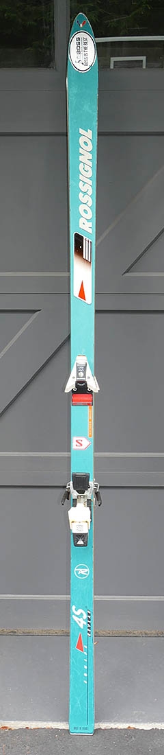 Vintage Rossignol 4S 196cm Downhill Skis. With Salomon 647 bindings. Easily one of Rossignol's most famous models - they dominated the 1988 Olympics. Untested.