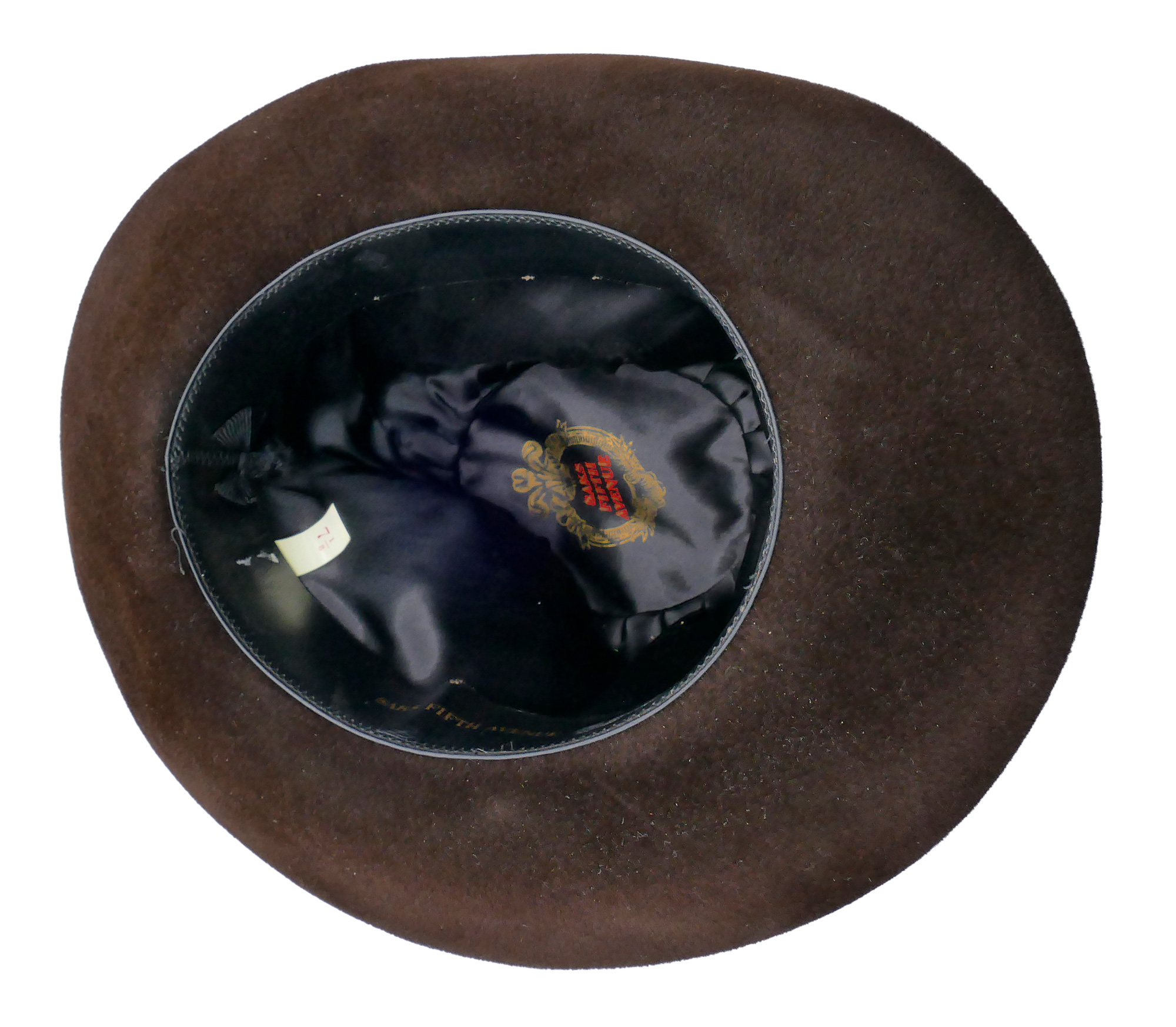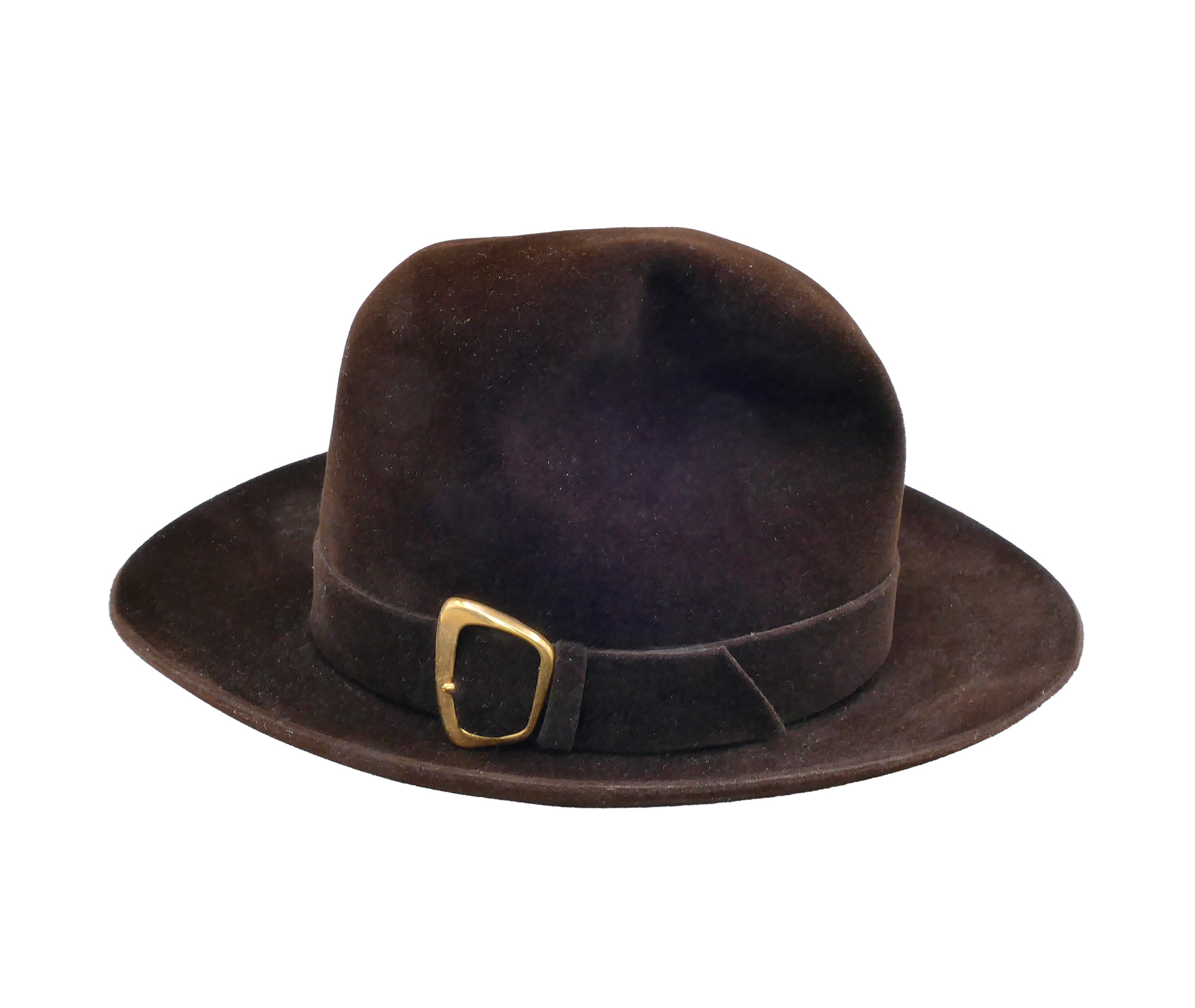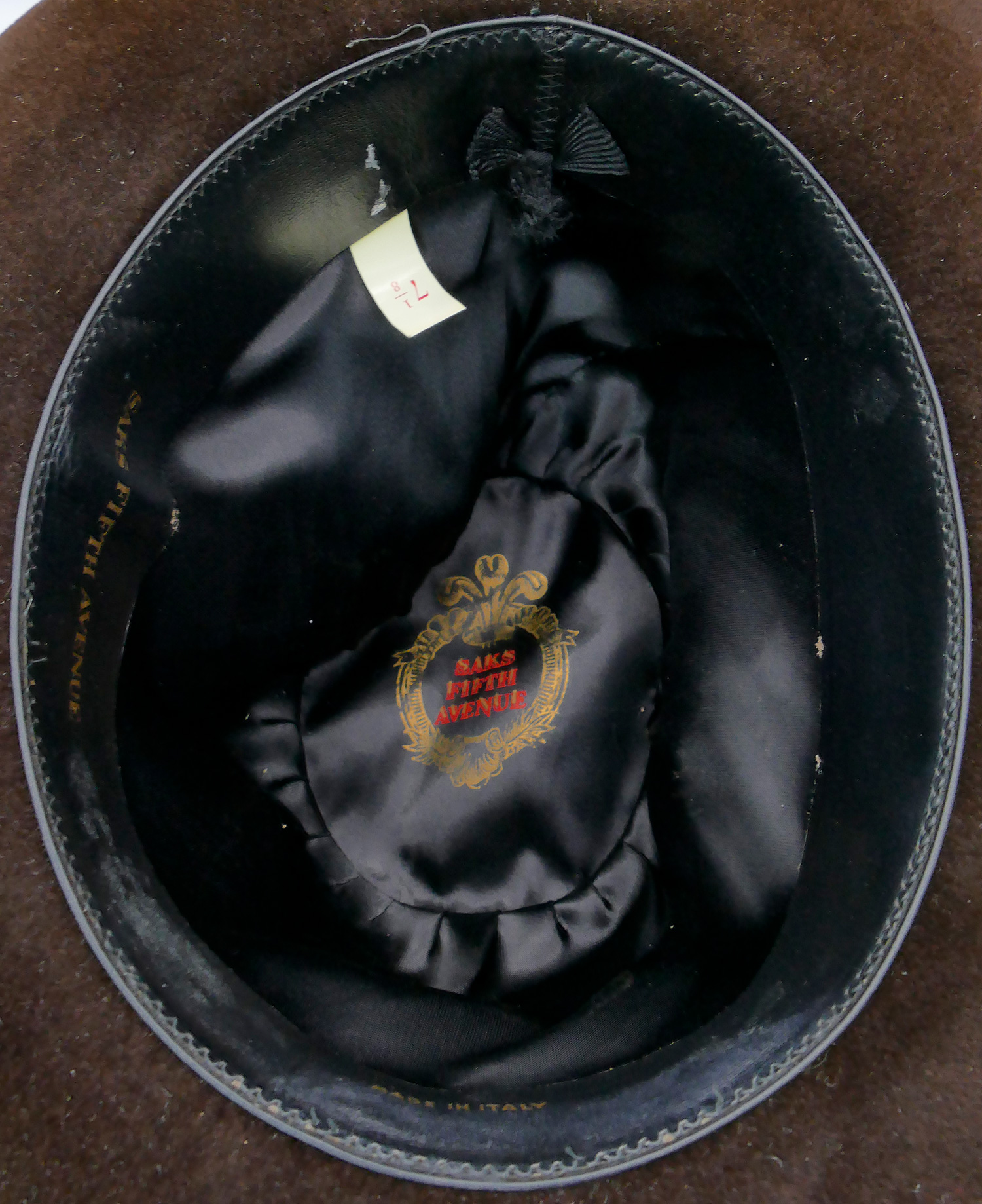 Vintage Saks Fifth Avenue Brown Men's Felt Hat. Size 7 1/8. With a brass metal buckle. In Good Condition.