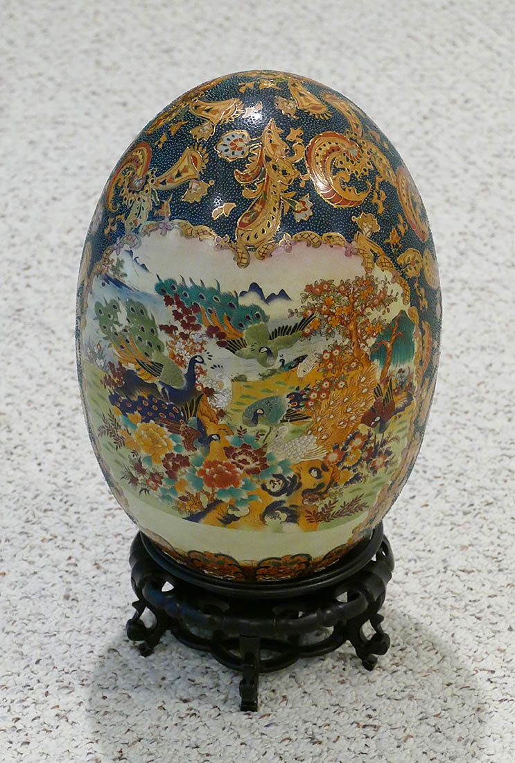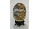 Vintage Satsuma Porcelain Egg. Comes with a separate wooden base. 18" Tall, 9" diameter. In Very Good Condition.