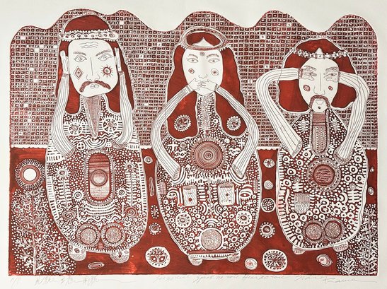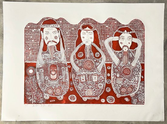 Vintage Shigeru Narikawa (Japan, B. 1946) Etching - "See No Evil, Speak No Evil, Hear No Evil". Signed and edition in pencil by the artist. Artist's Proof. In good condition with some dirt spots on the paper which wont be seen when framed. Unframed. Measurements: 37.5" x 27.5" (paper)