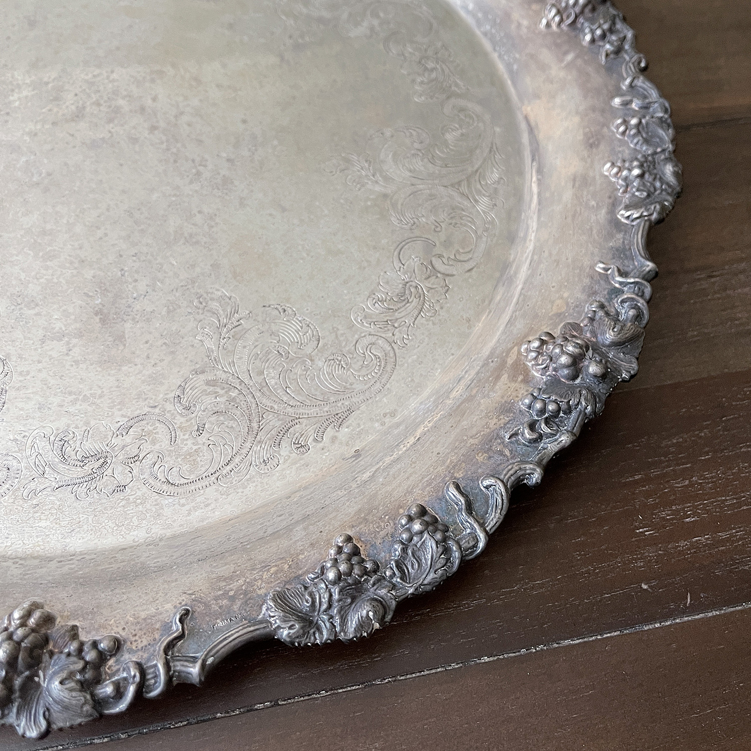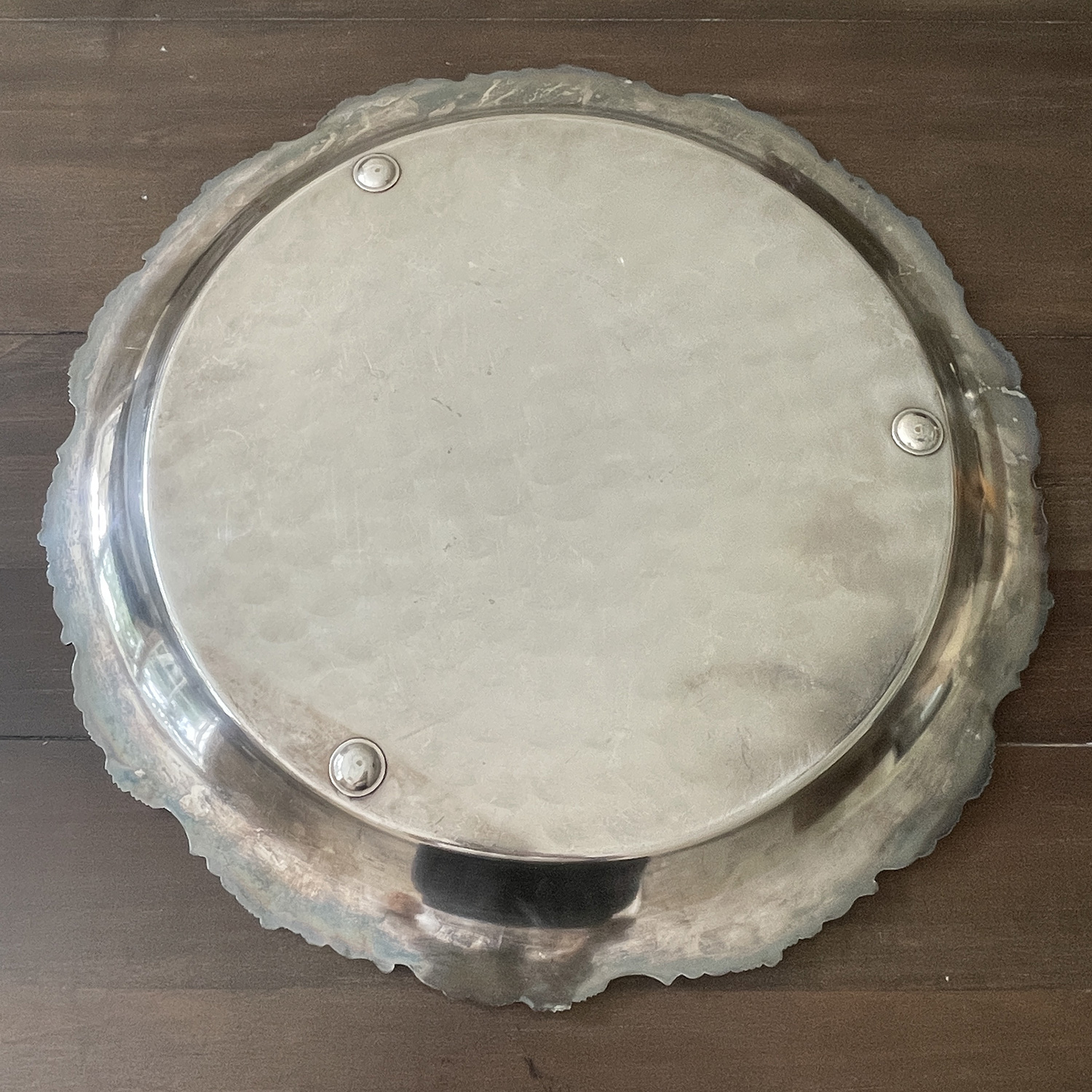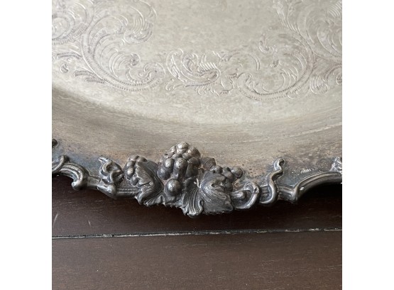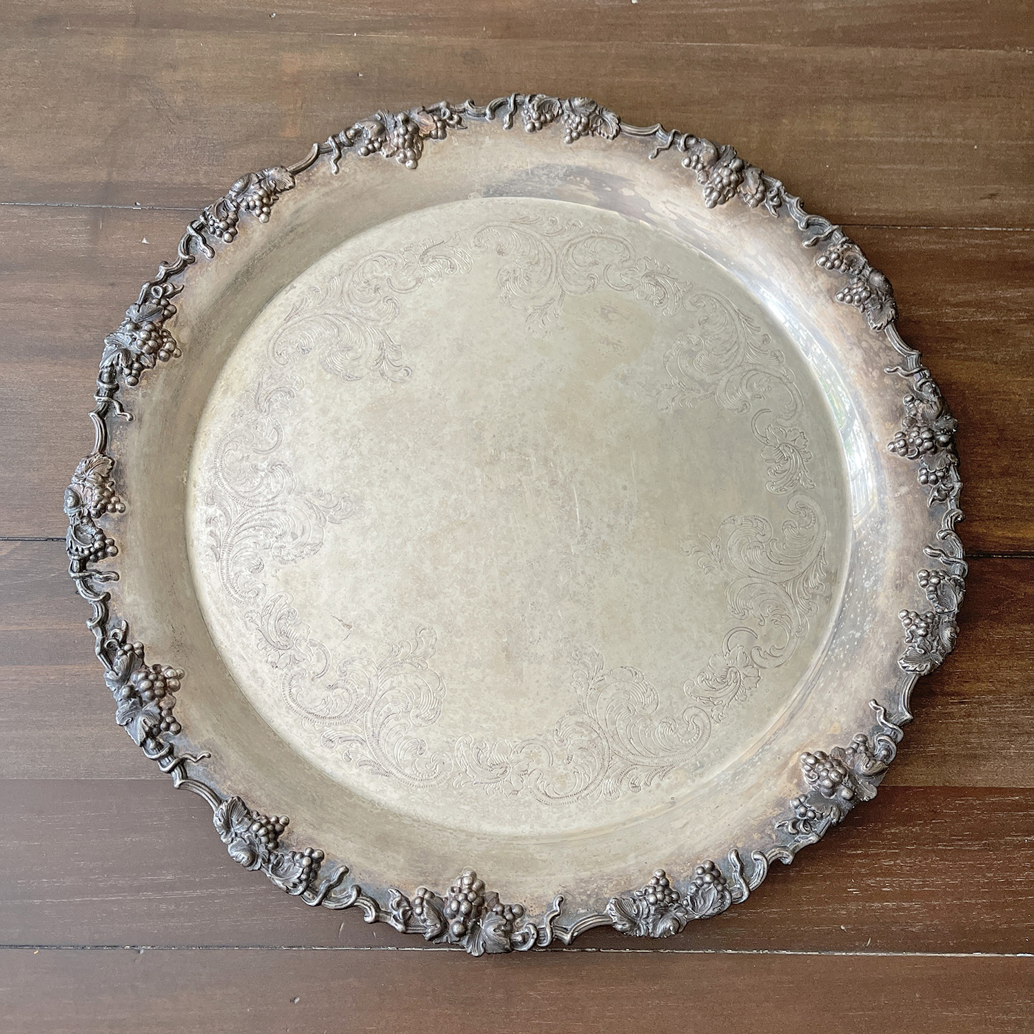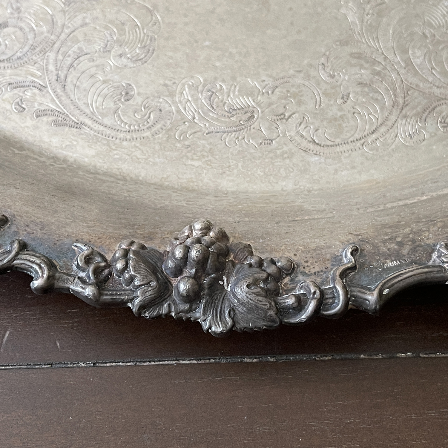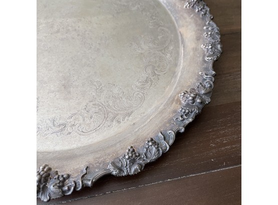 Vintage Silver Plated PRIMA NS Large Footed Dish Sweden. Marked PRIMA NS. Grape relief border. 18" diameter
