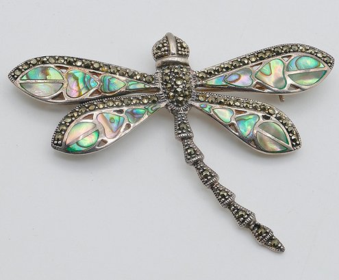 Vintage Sterling Silver Abalone Dragonfly Brooch / Pendant. 92.5% pure silver (marked "925" on back). In Excellent Condition. Measurements: 2.625" x 1.875"