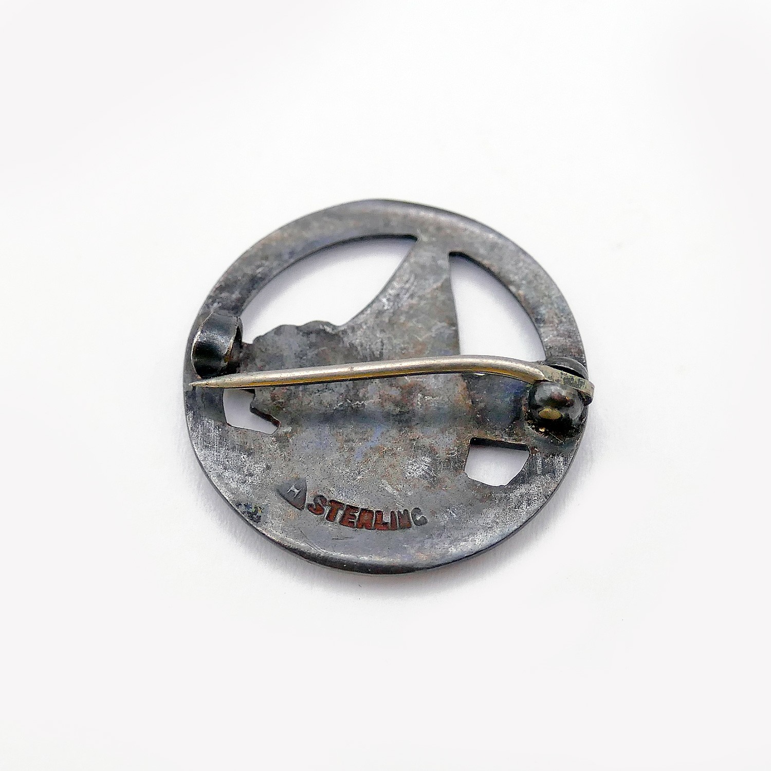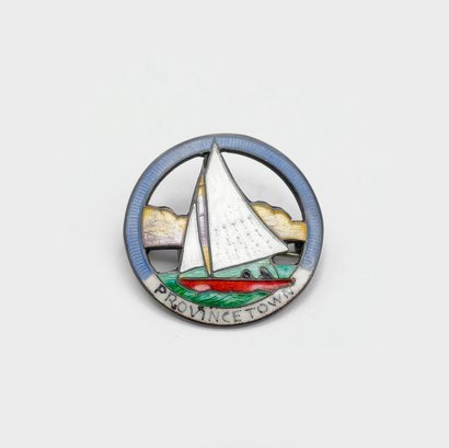 Vintage Sterling Silver And Enamel Provincetown Pin. Measurements: .875" Round. In Very Good Condition.