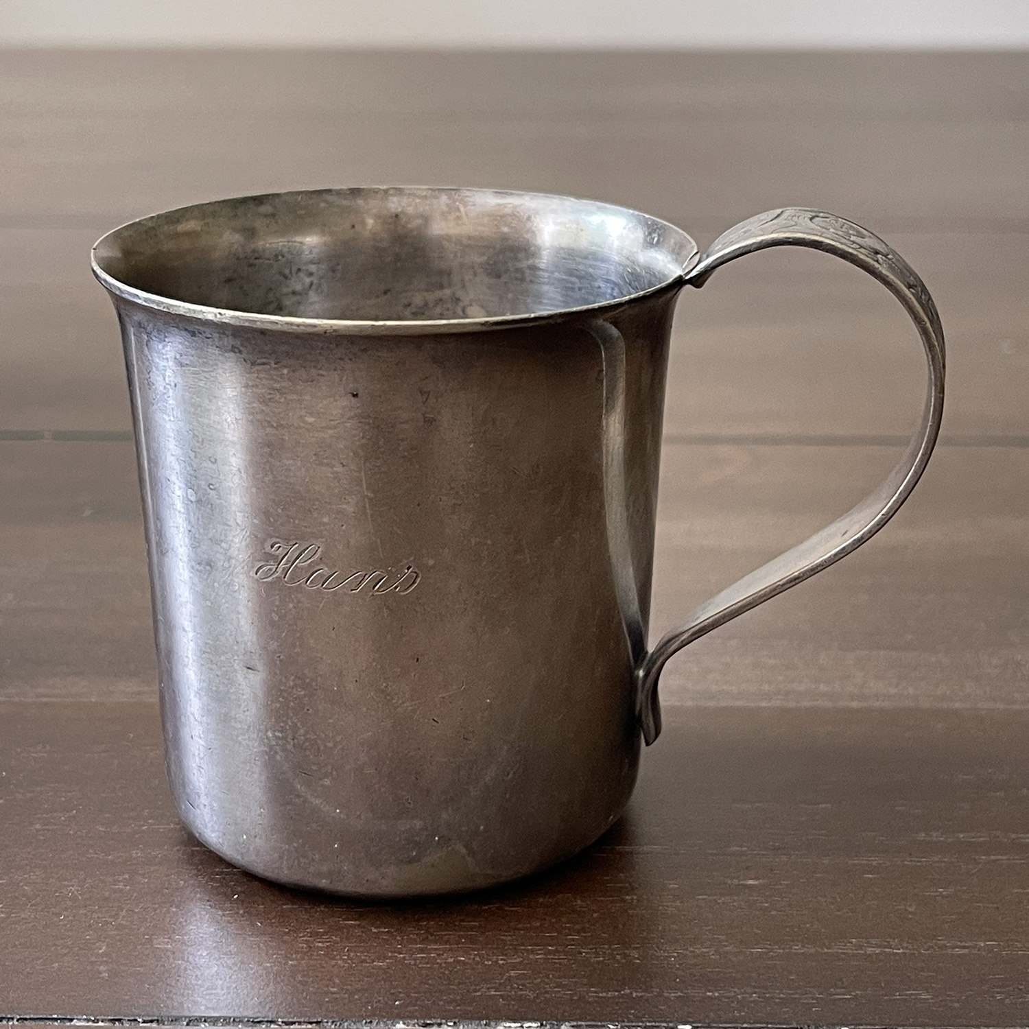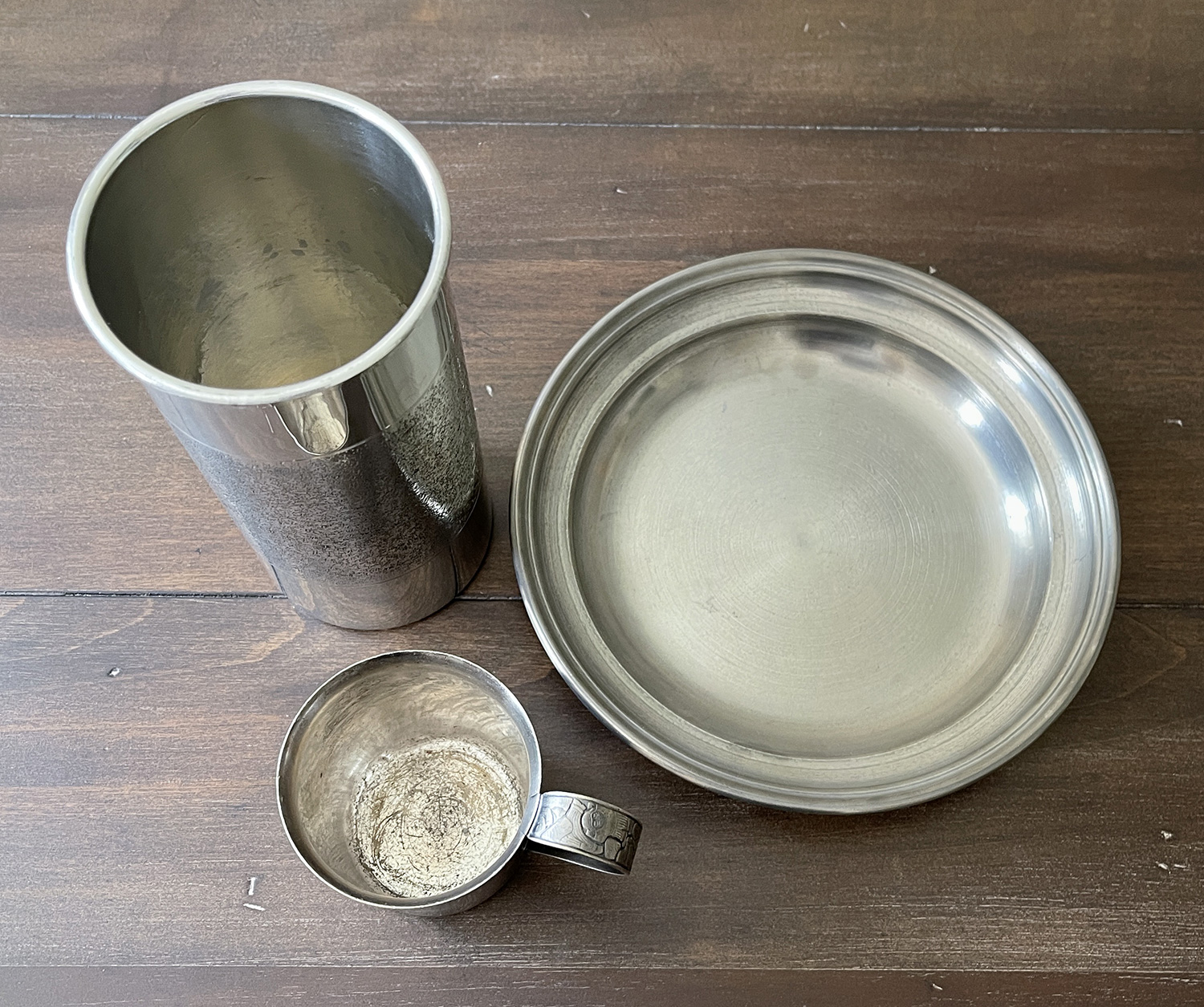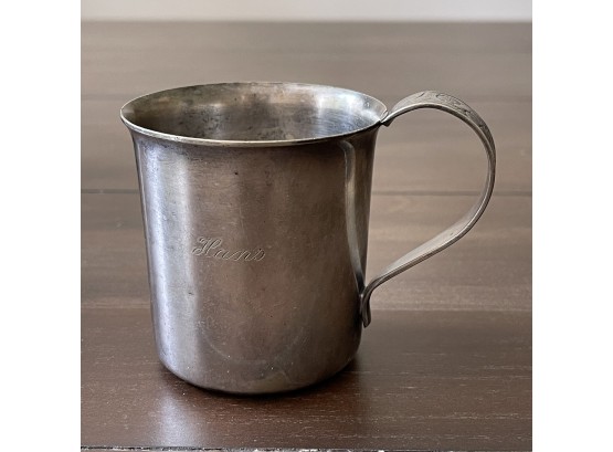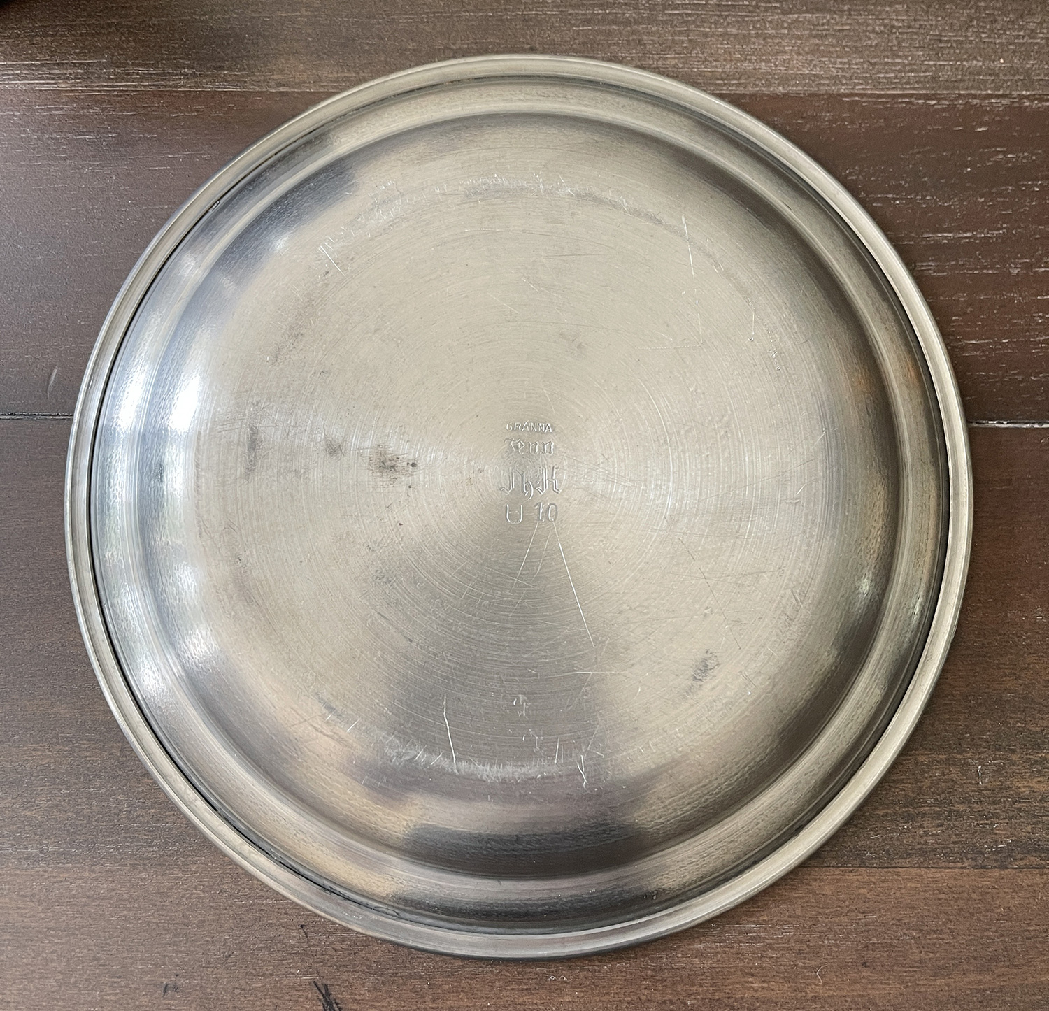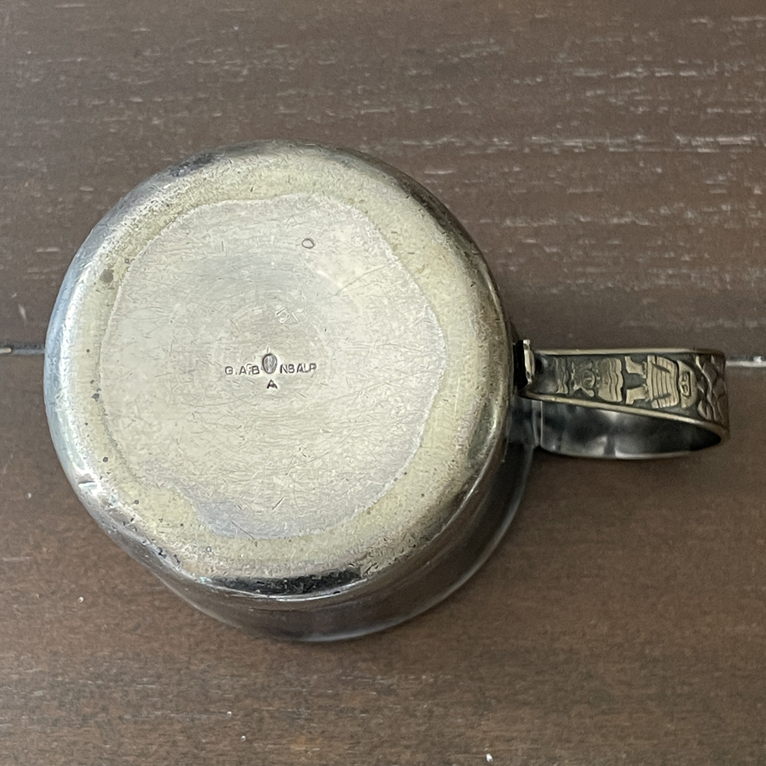Vintage Swedish Pewter/Silverplate Lot - Includes a Svensk Tenn Alton K.E. Palmberg Pewter Cup/Vase (6.75"h x 3"), Gränna Tenn 8" Pewter Plate, and a GAB silverplate 3" cup. All In Very Good Condition.