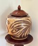 Vintage Theodore Alexander Contemporary Tribal Ceramic Pottery Bowl And Wood Lid. 12" x 11.5" x 16"h. The bowl is in Very Good condition, the lid has a wear mark on the top.