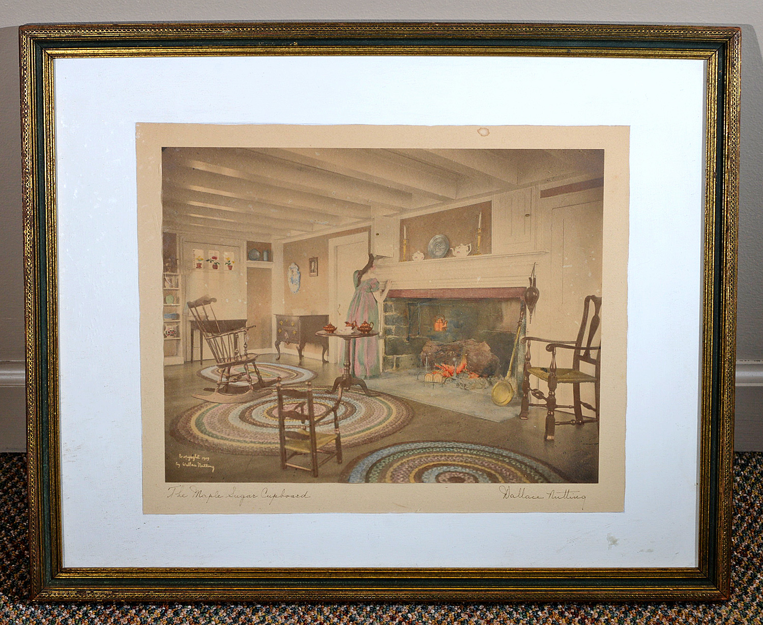 Wallace Nutting Hand Colored Photo "The Maple Sugar Cupboard". Circa 1910-20s. Hand Titled & Signed In Pen. Measurements: 18" x 22" (frame).