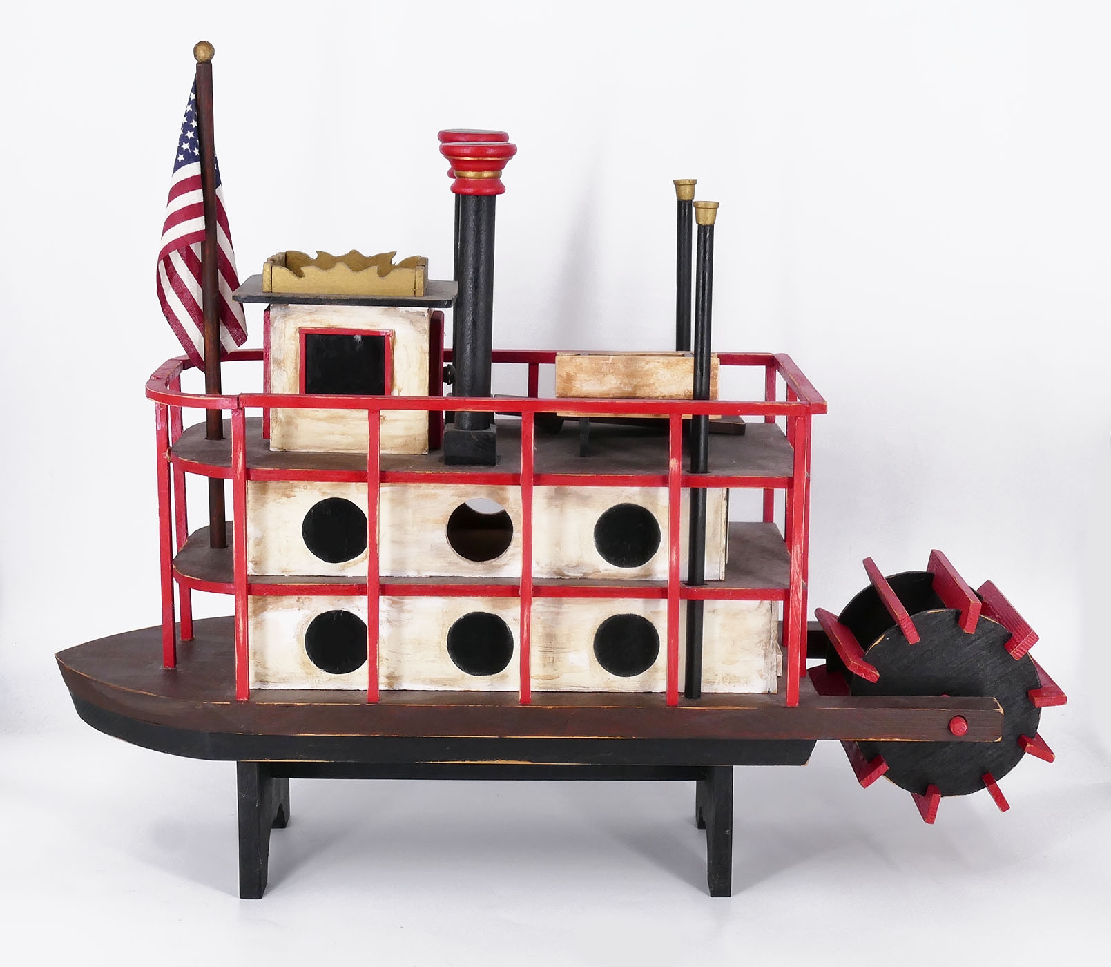 Walt Buttrick (CT) Folk Art Birdhouse "Mississippi Birding" - Paddle Boat Design. Wood Construction, for Indoor Display. In Very Good Condition