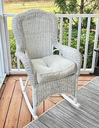 Wicker Rocking Chair. In White. With cushion. In good condition. 28"w x 37" x 44"h