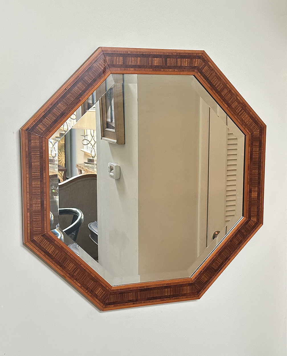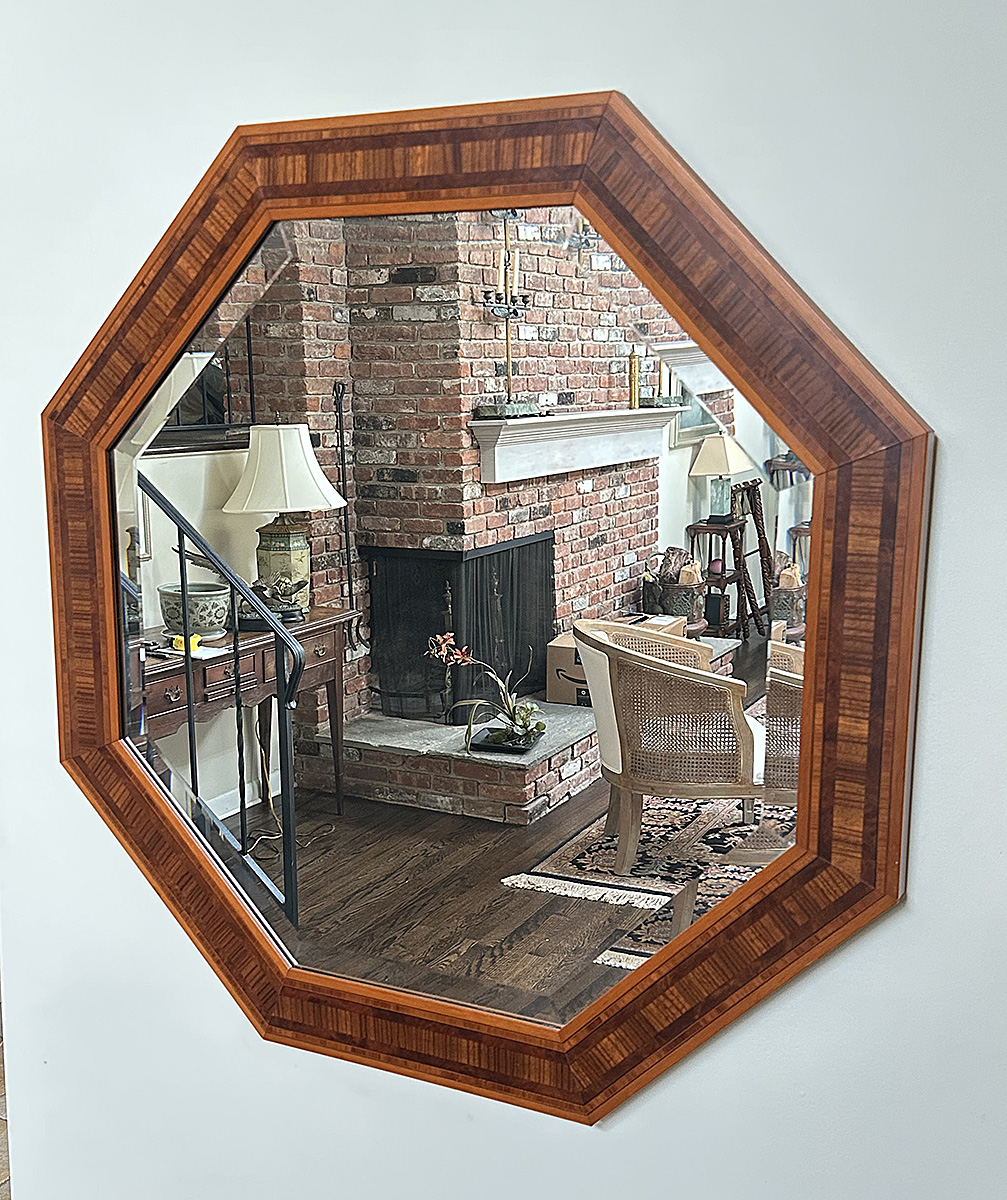 Windsor Art Octagon Wood Inlay Framed Mirror. In Very Good Condition. 29" x 29"