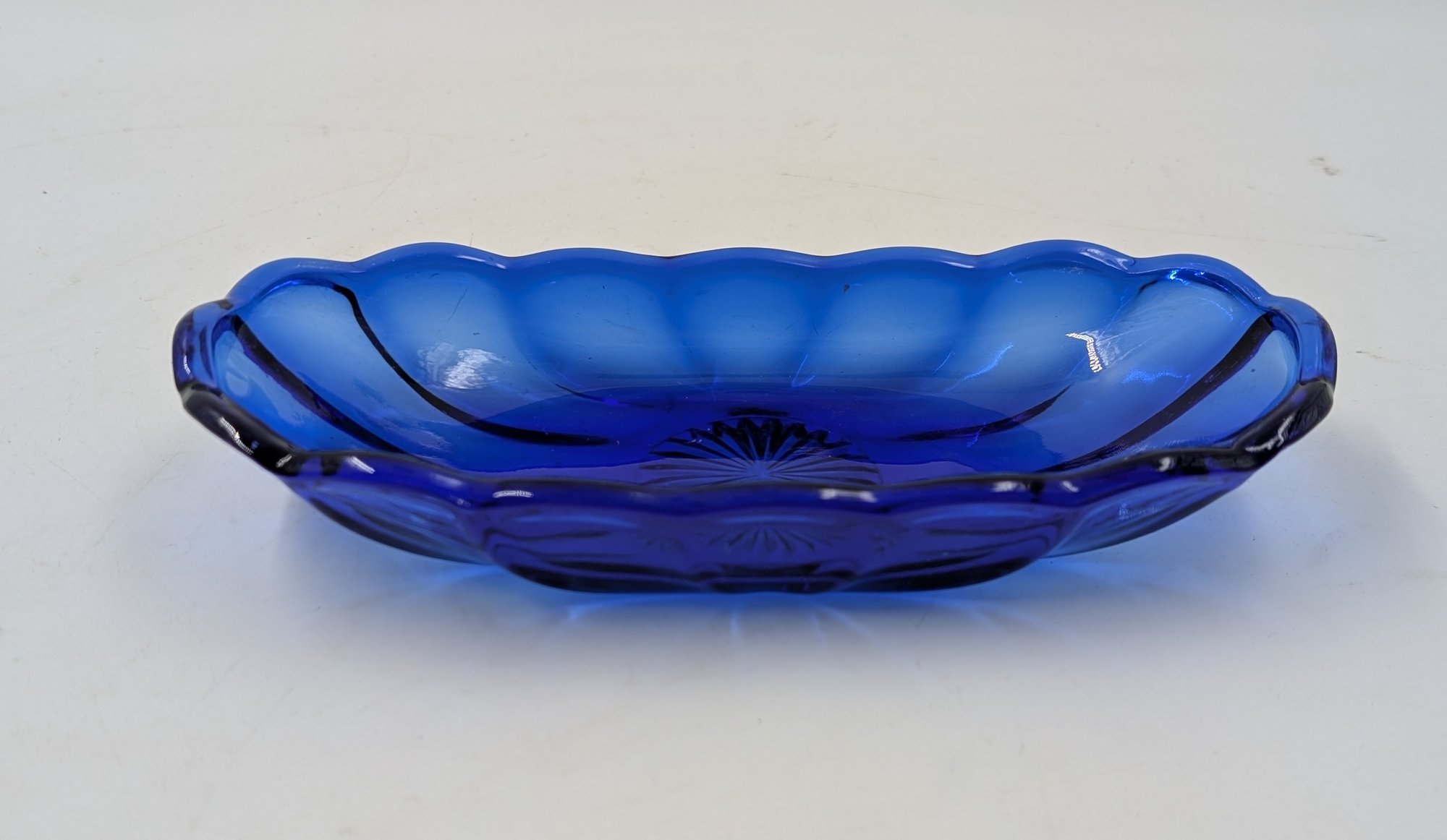 Banana split or relish dishes, featuring a scalloped edge and a sunburst pattern pressed into the bottom. Shipit@loop-cycle.com