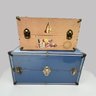 Antique doll wardrobe trunks. See photos for condition. Blue is approx 19" x 10" x 10". Redwhite is approx 14" long.