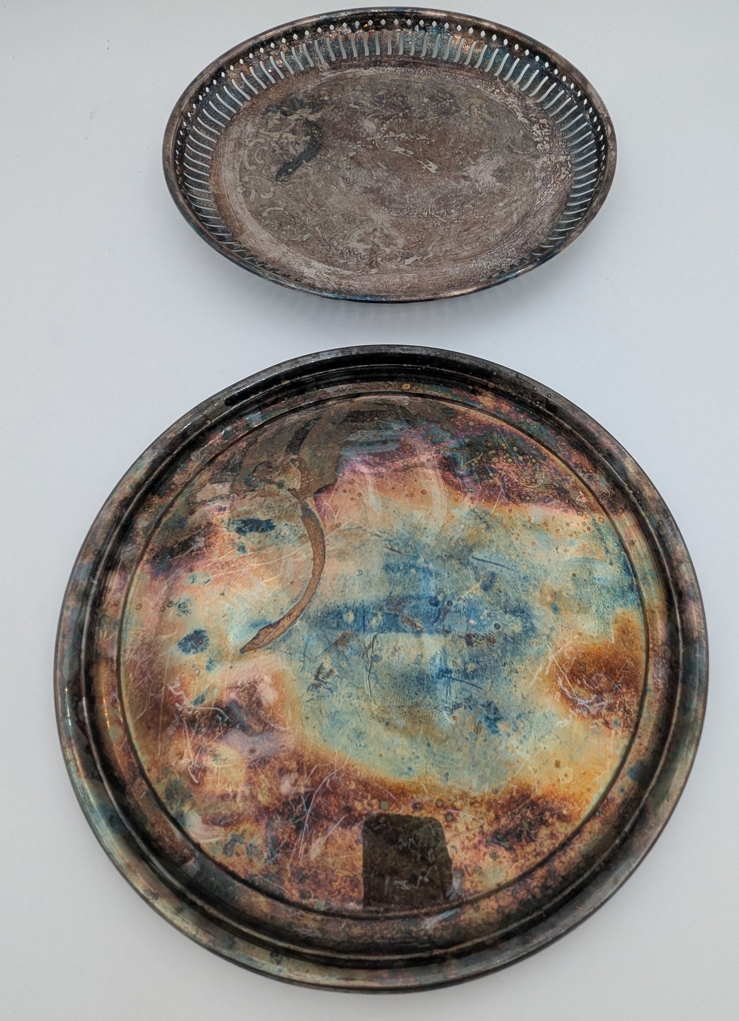 One approx 10" round with pierced sides, and one appx 12".