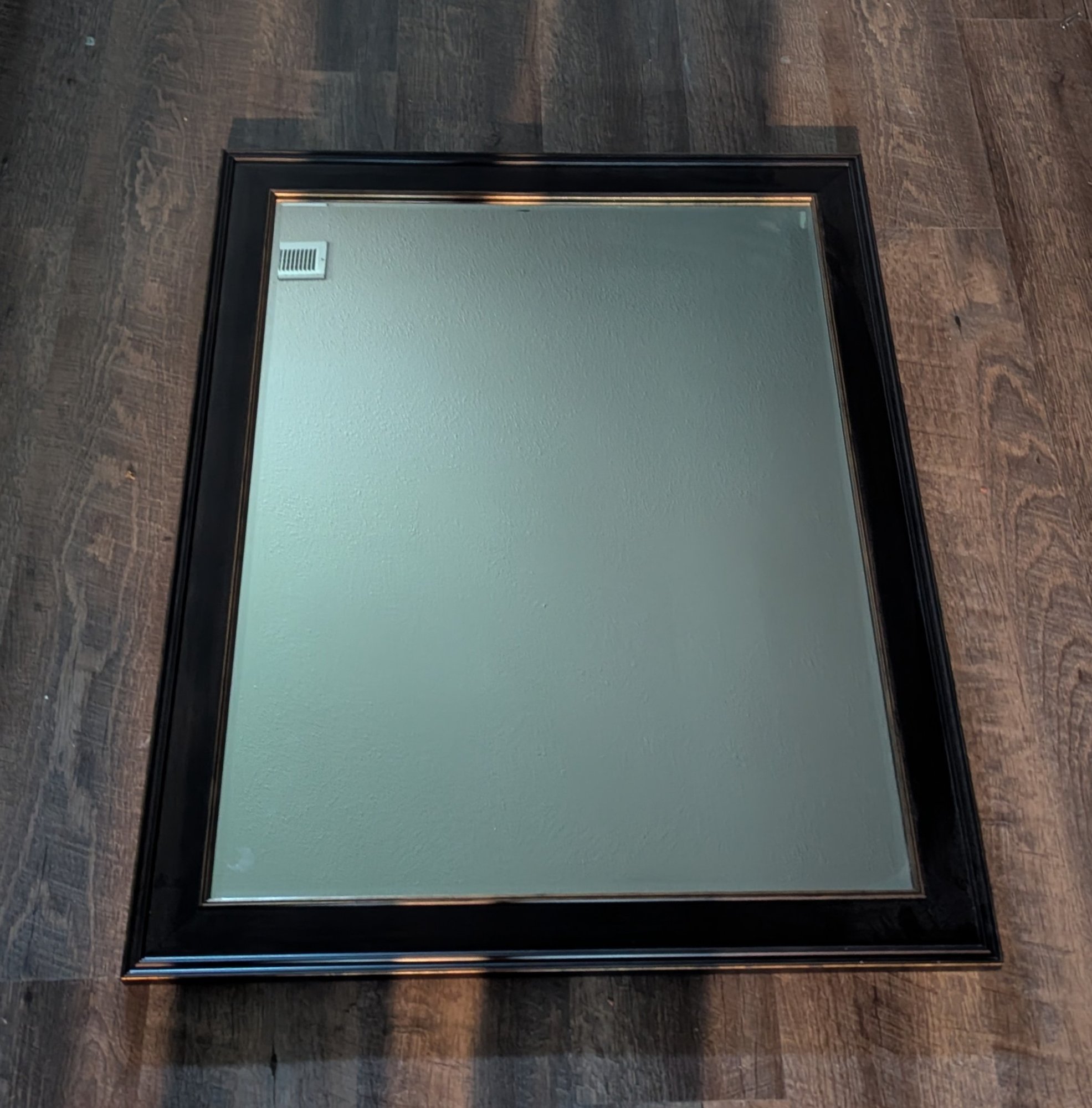 Oil bronzed-look wood frame. Beveled mirror (see pic for measurements).