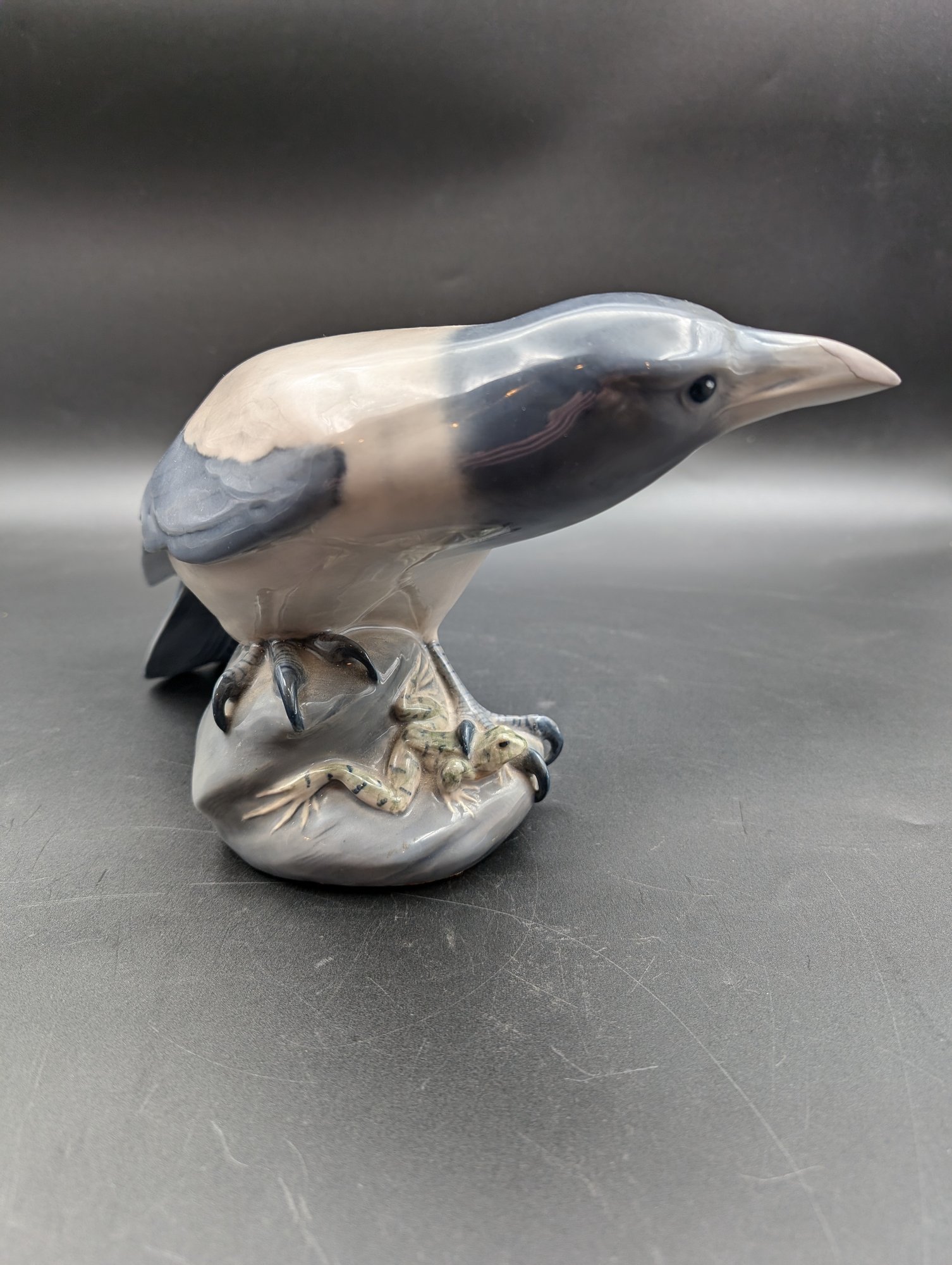 Likely like a replica of a Royal Copenhagen Crow bird with frog.