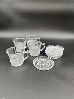 D'Arques, France, Daisy mofit coasters - and - glass punch bowl cups,
