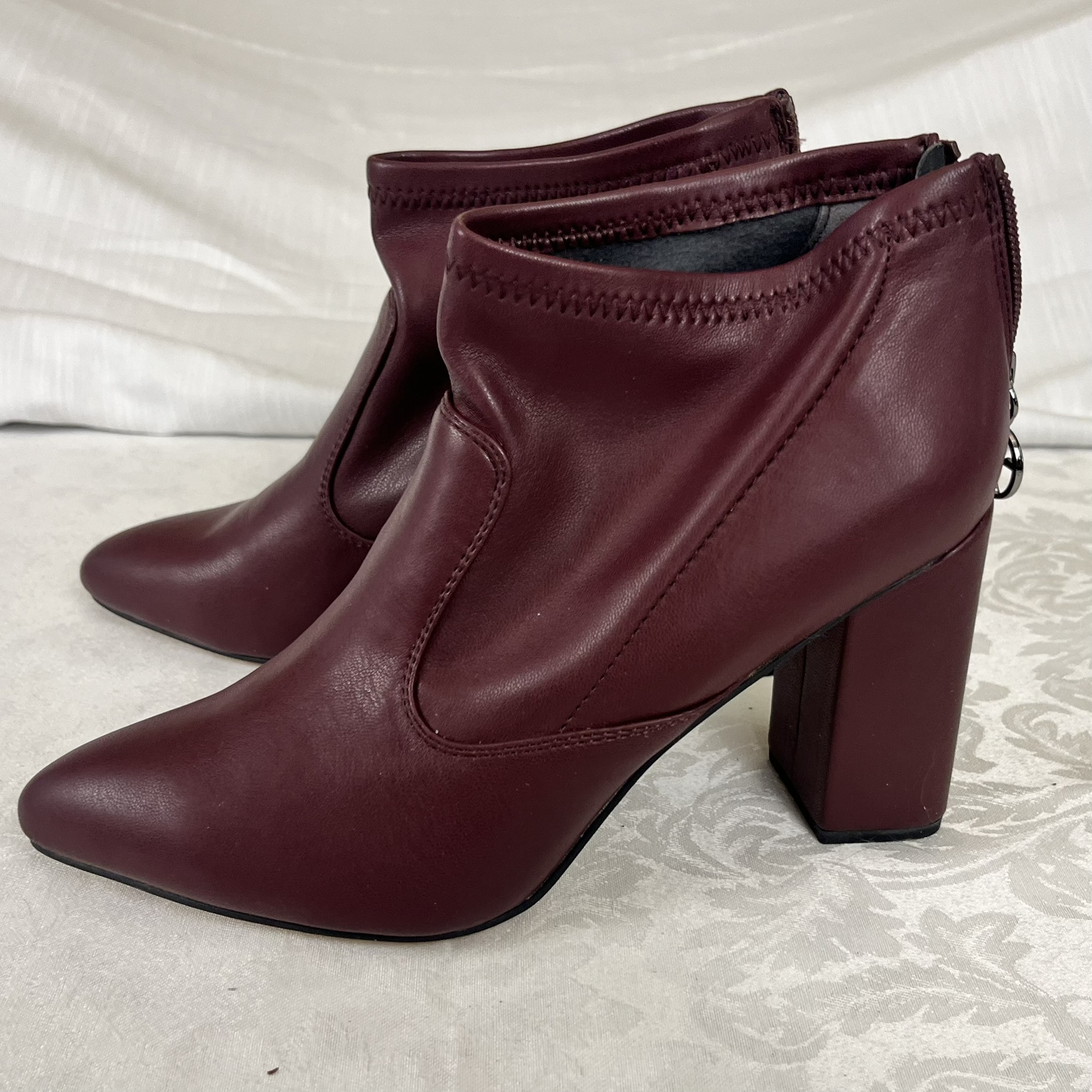 Franco Sarto Kortney cabenet color leather block heel booties women's size 8.5W, New.