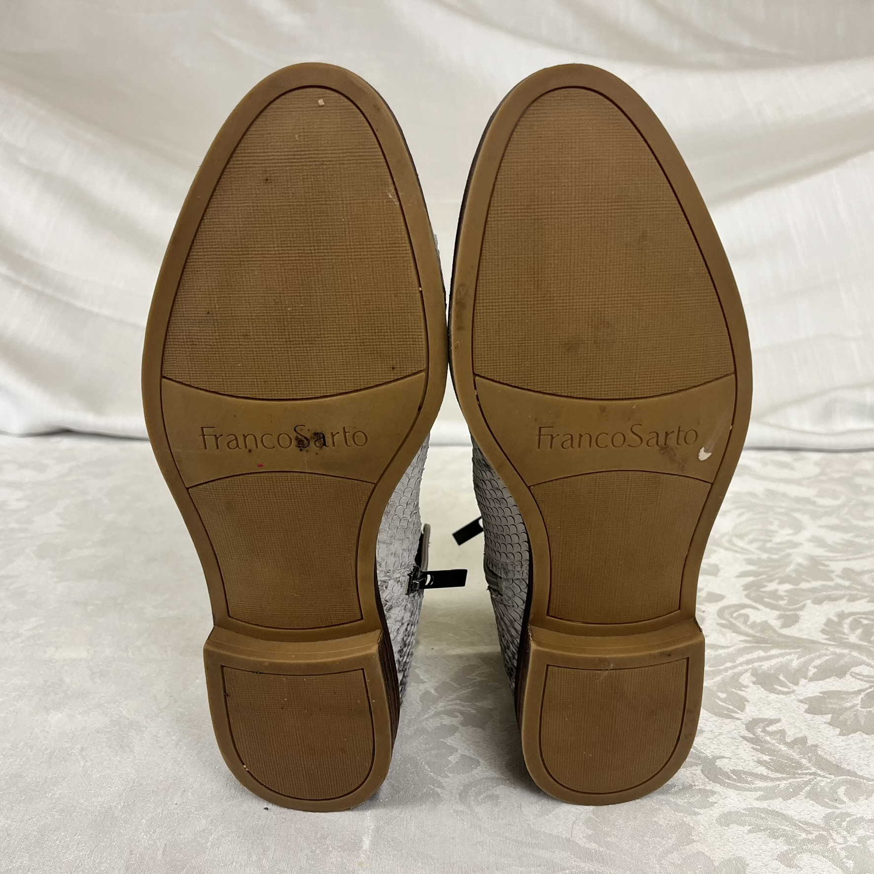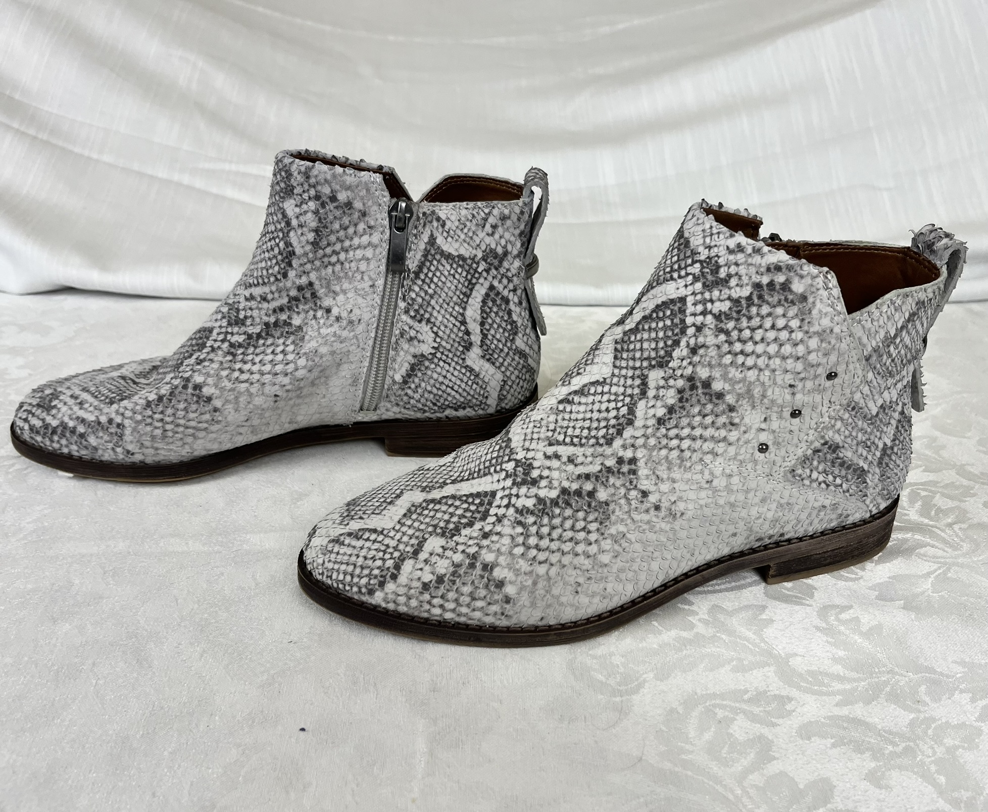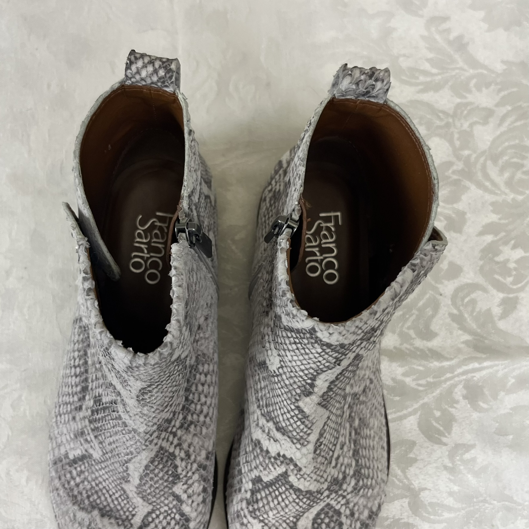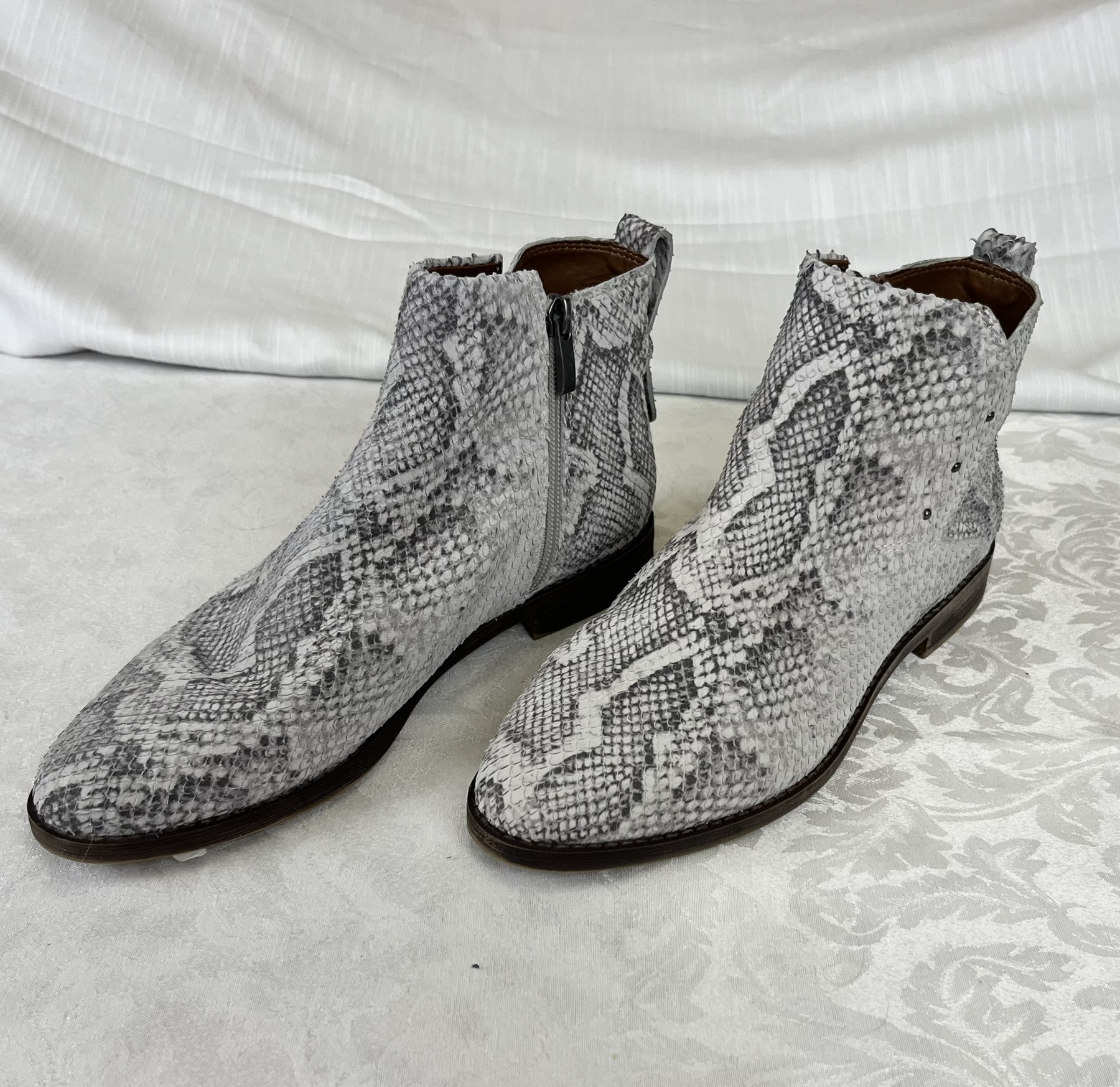 Franco Sarto Marcus women's booties in grey/black snake skin pattern leather- Size 8.5W(US) - Lightly used.