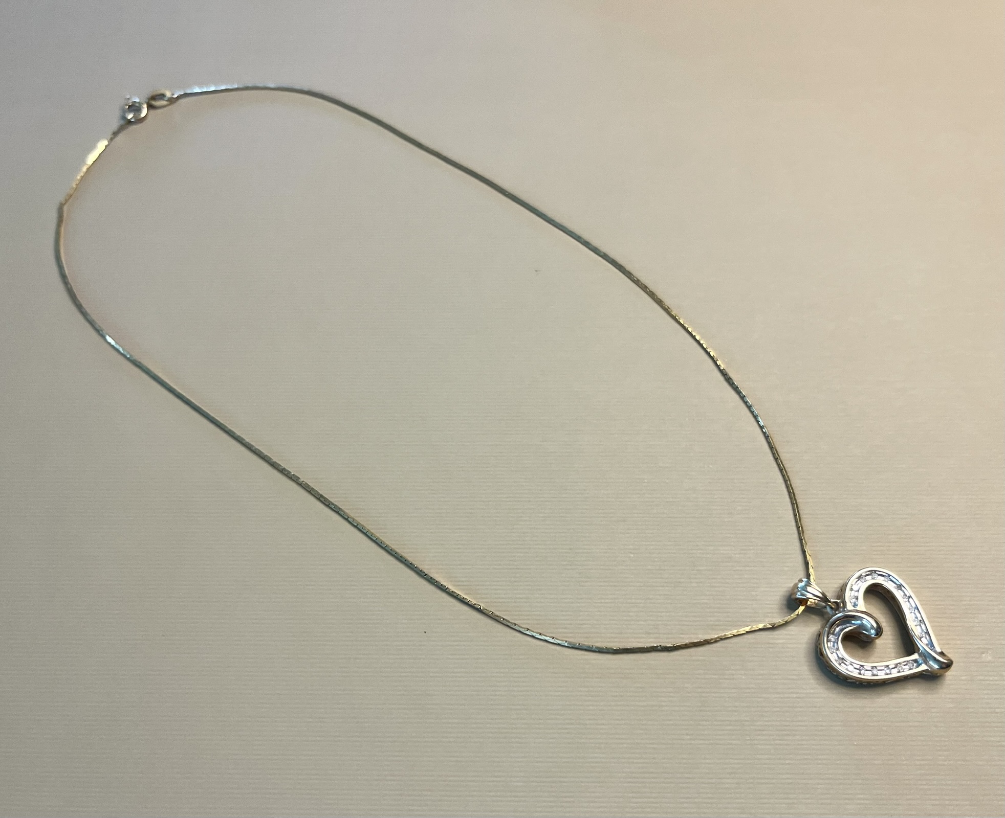 14kt gold chain and 10kt "I Love You" heart shaped pendant with diamond chips or C.Z. stones. See photos for karat stamps (no weight).