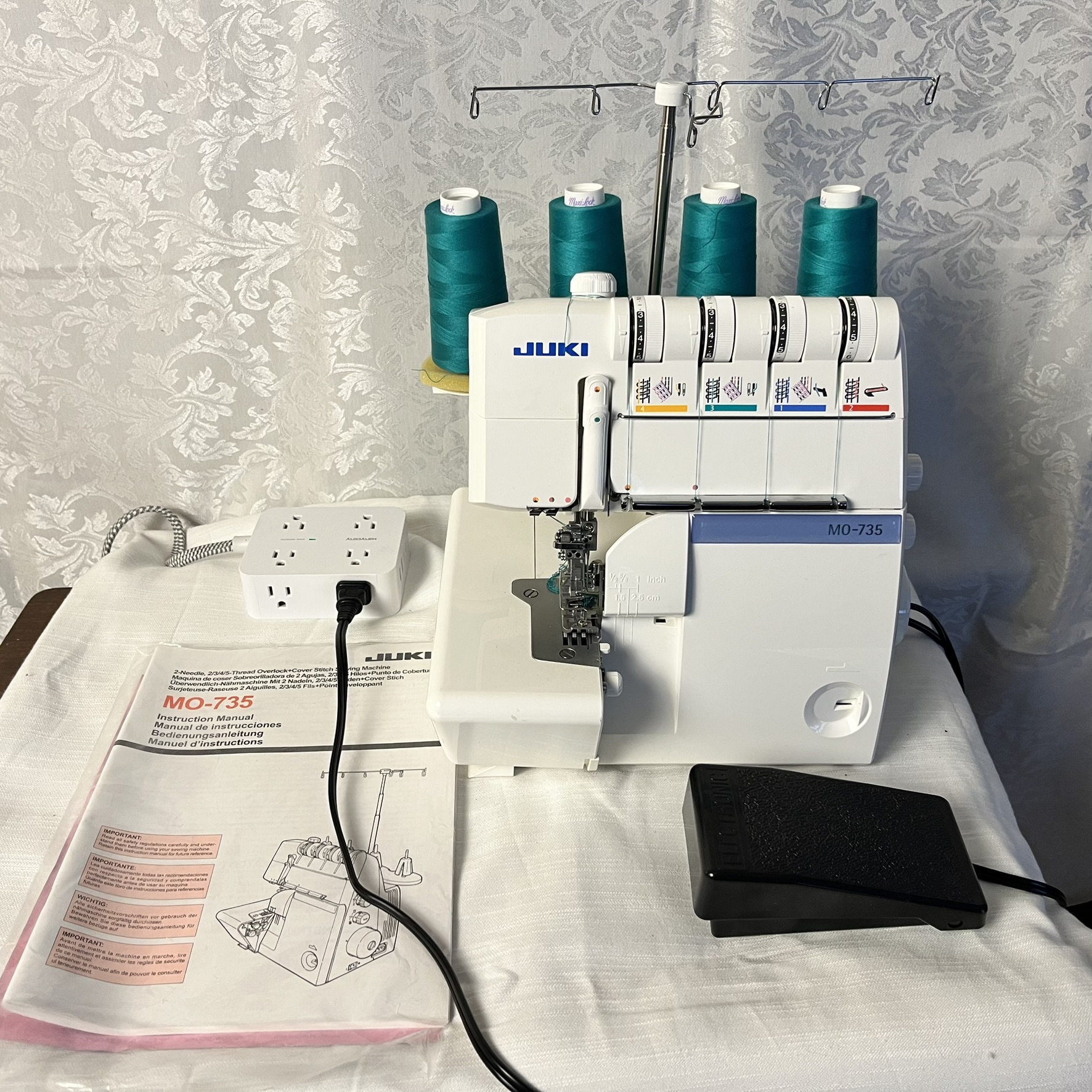 JUKI MO-735 5-Thread Serger and Cover Hem Sewing Machine and foot pedal, In beautiful condition, works like new.