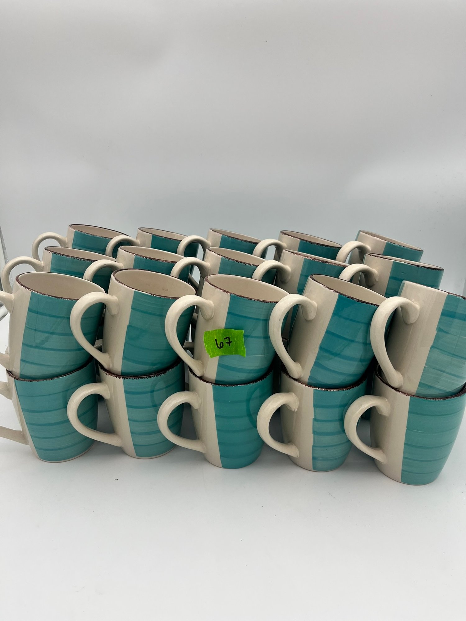 Teal-turquoise blue swirl stoneware. 12 oz. See photos for 2 minor flaws.
