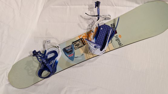 Signal 152cm snowboard with Rossignol bindings.