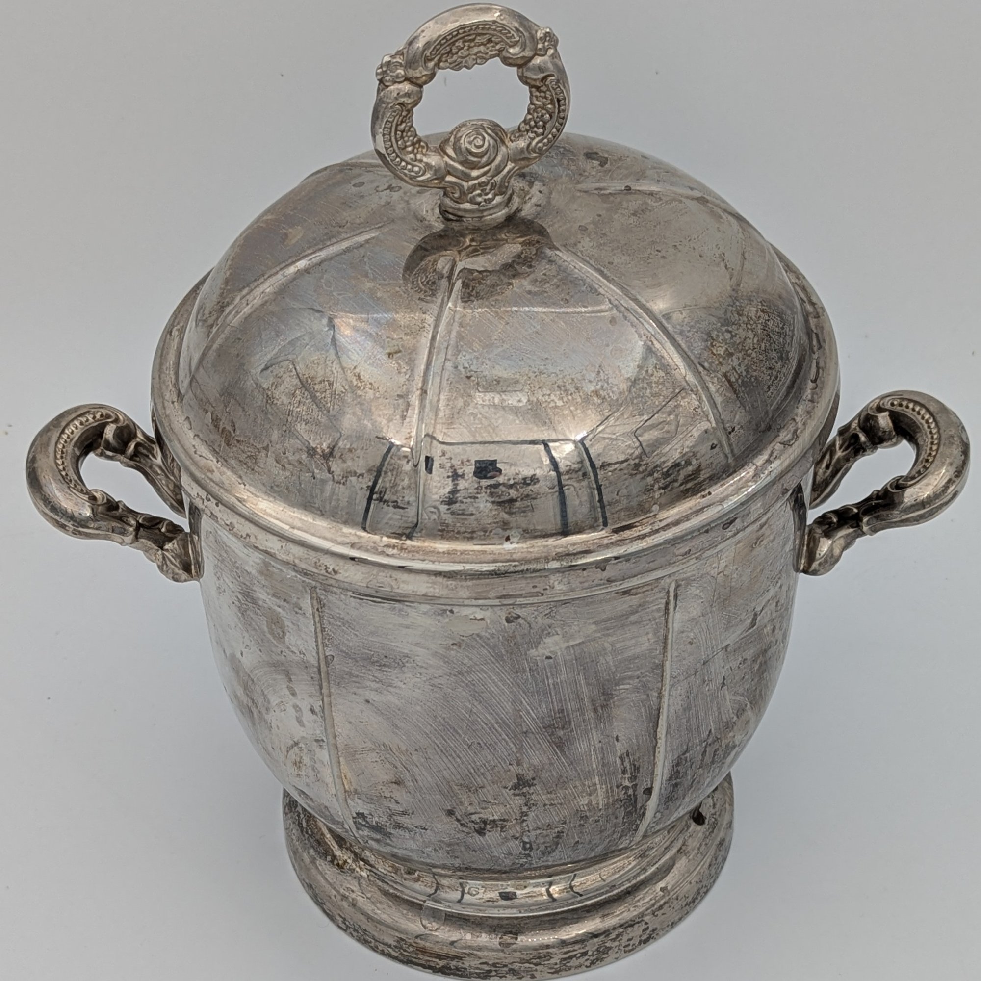 Oneida silver plated ice bucket with lid and plastic insert