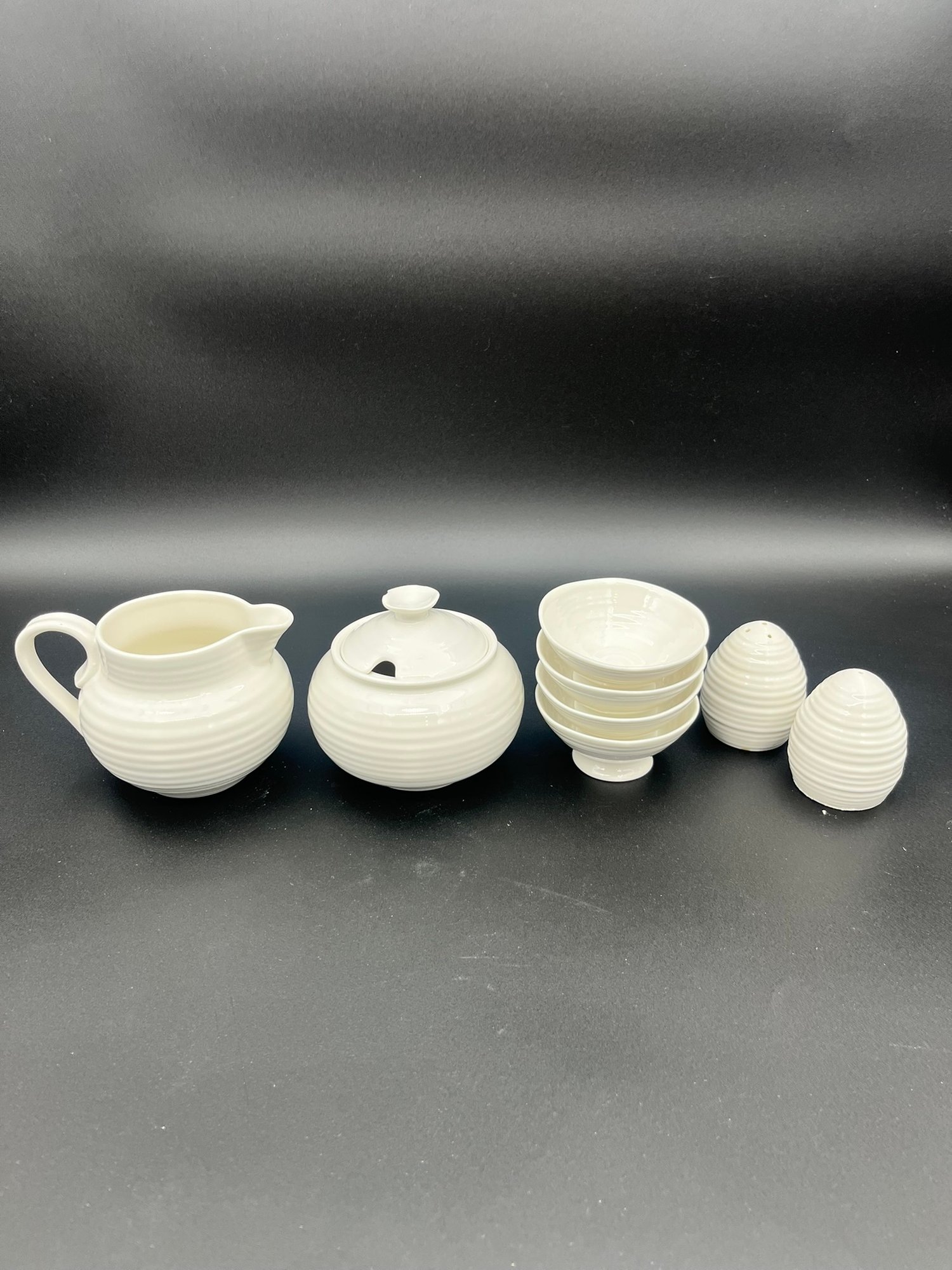 Sugar bowl (T2102) / Creamer (T1702) / S&P (T2001) / Four Mini bowls (see photos for size & chips).