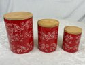 TEMP-TATIONS red floral lace with brown accent collection: 3 flour & sugar cannisters. See photos for pieces incuded in lot and condition