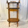 Vintage classic 3-tier wood phone table and plant stand with drawer and spindle rails and legs. Refinished/painted after market. A bit wobbly, needs to be tightened. Approx 31" h x 16"w x 12"d