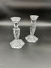 Pair of 7-1/8" Candlesticks. Clear crystal cut glass. Six sided base.