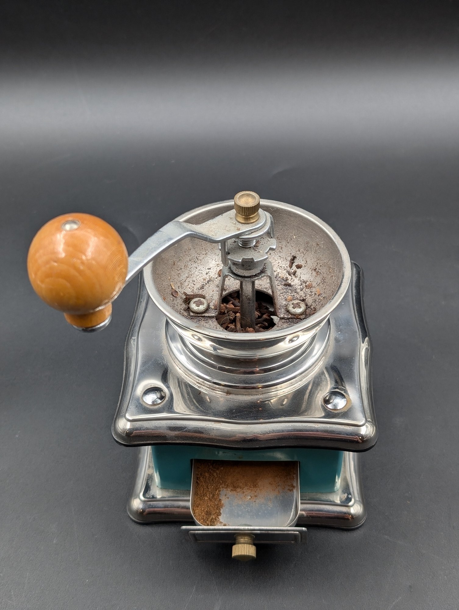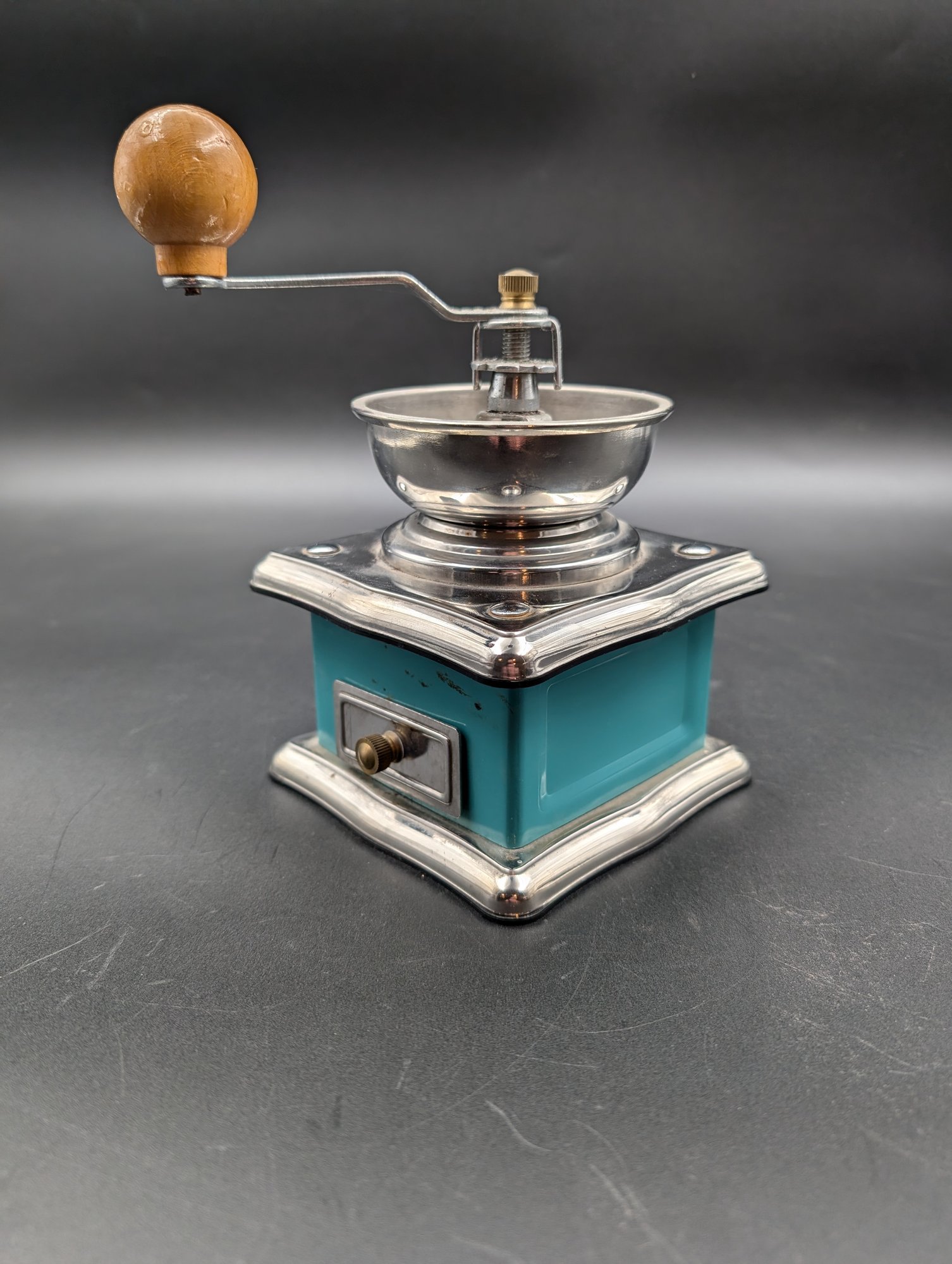 Vintage coffee grinder used to manually grind the coffee beans by hand. Nothing better than a fresh ground brewed coffee.