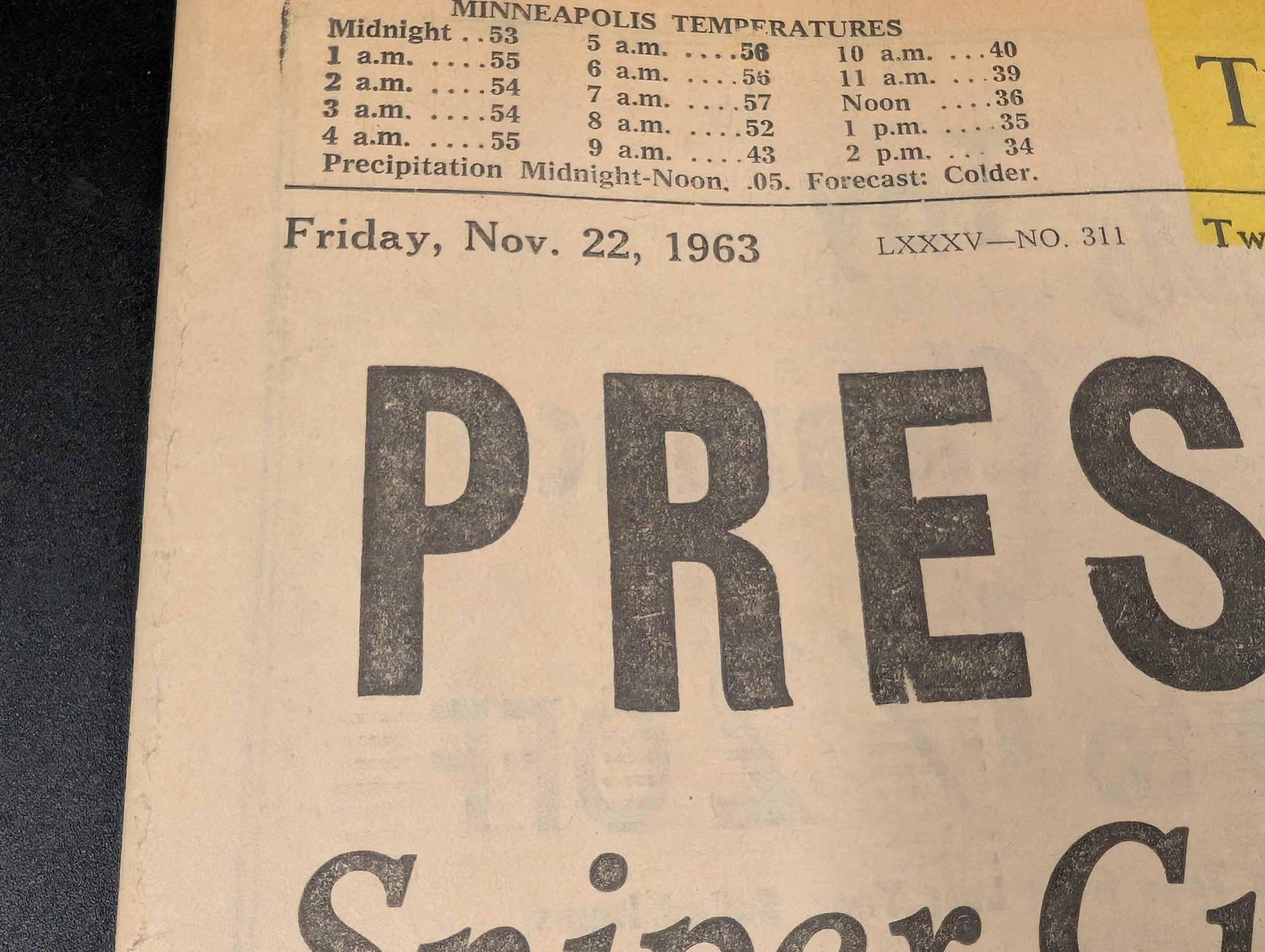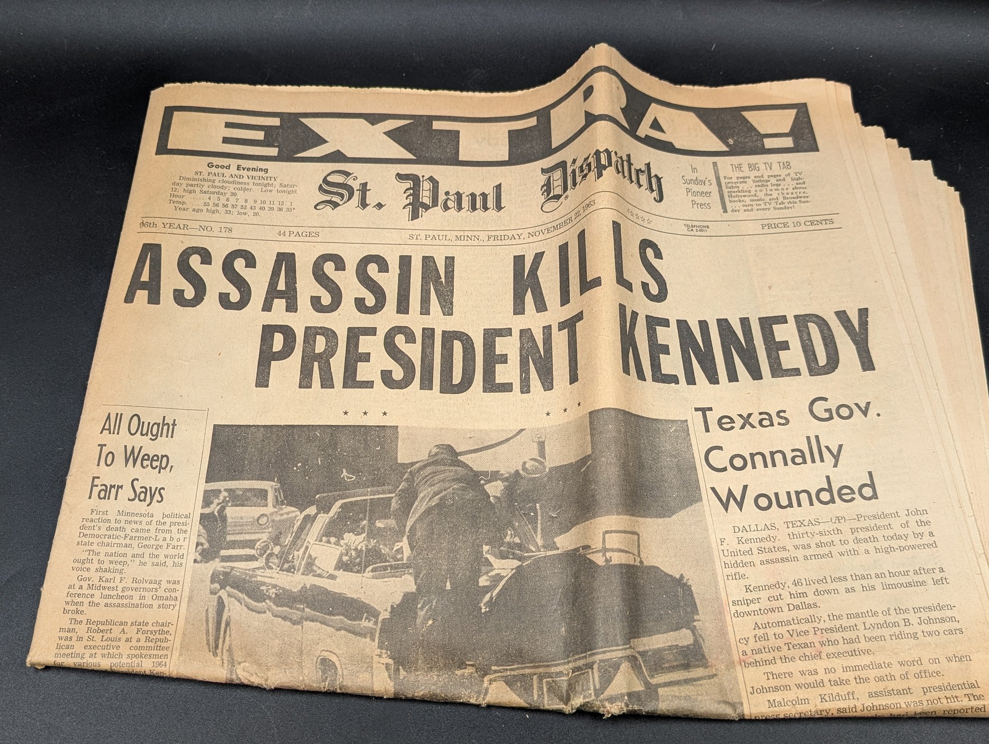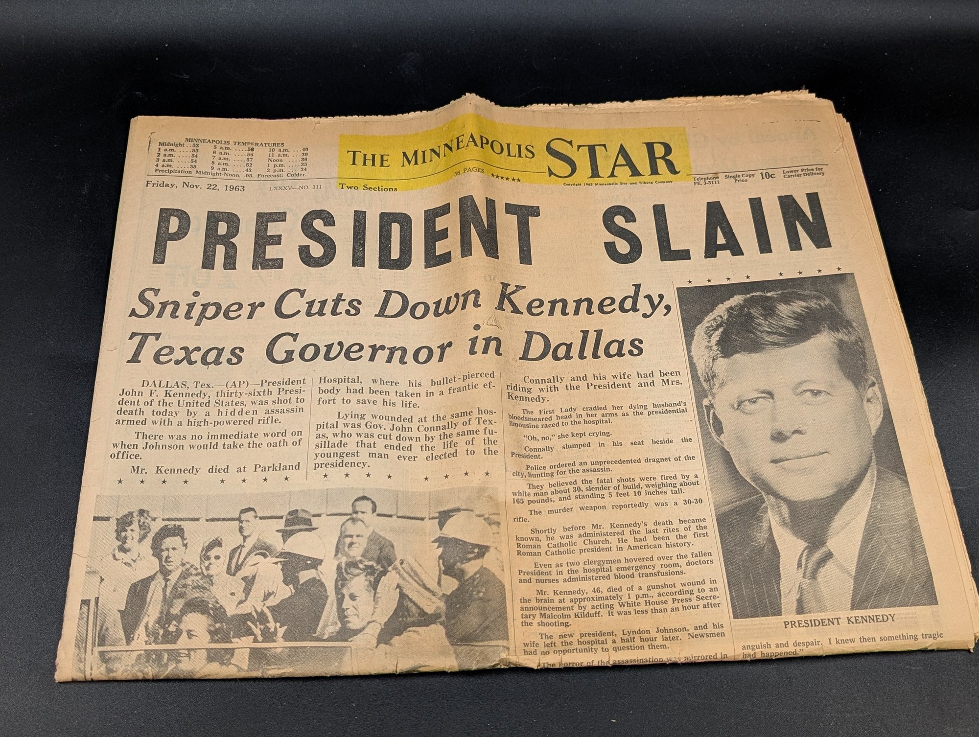 Minneapolis Star, St. Paul Dispatch, both dated Nov 22, 1963. 1963 Newsweeks and a LIFE.