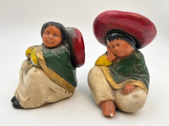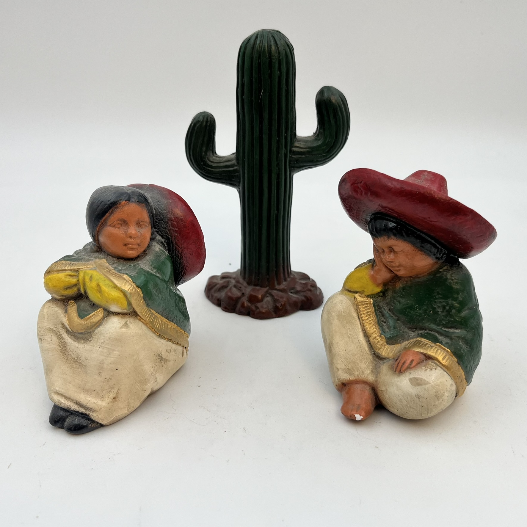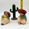 Vintage Mexican Siesta boy and girl with cactus. Cactus is tallest piece at 7".