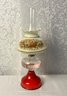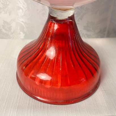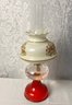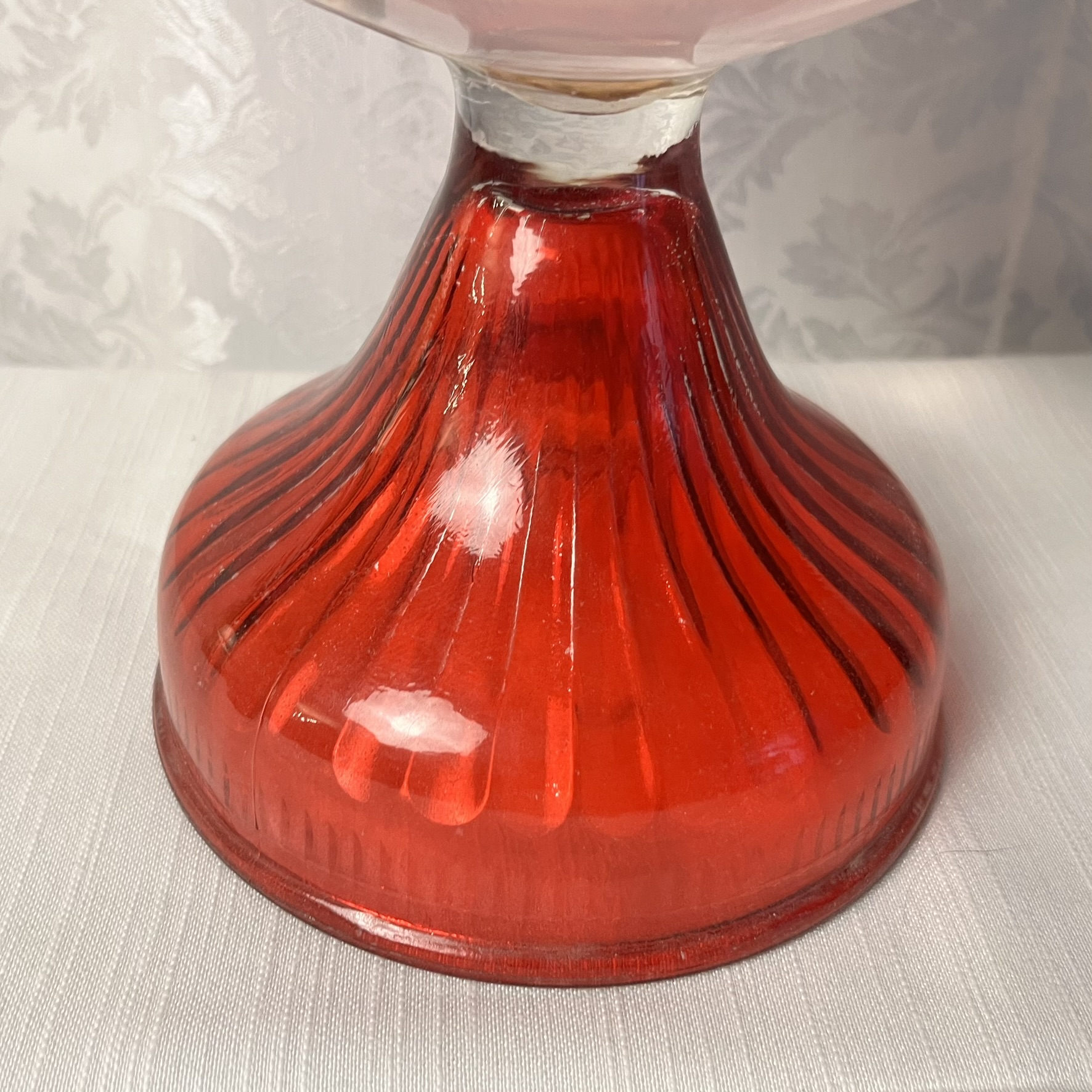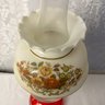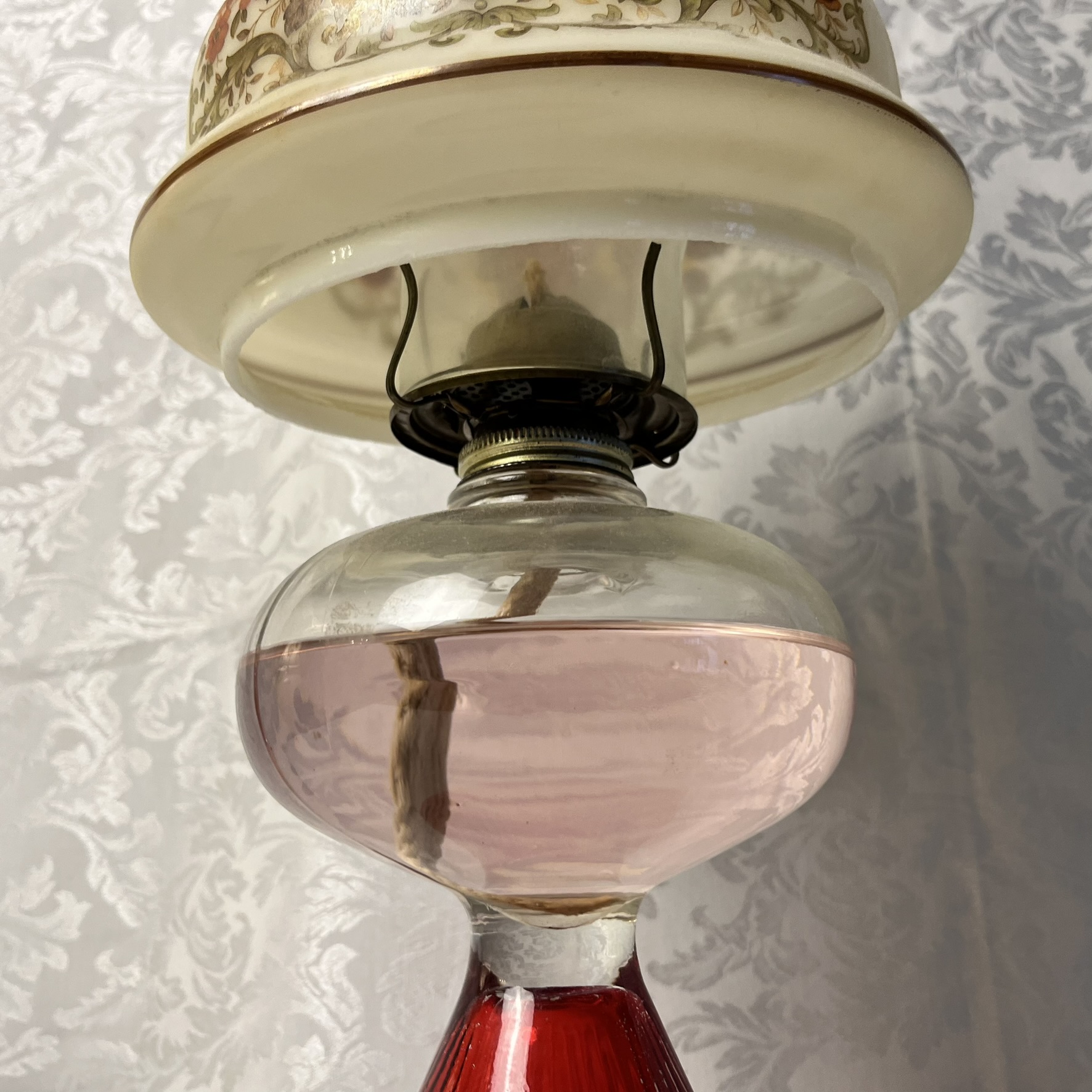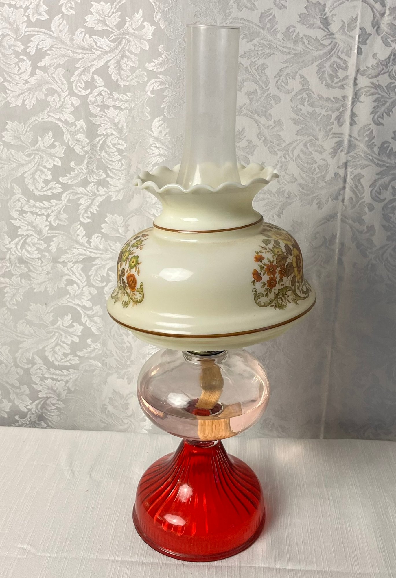 Vintage 1970's hurricane oil lamp. 21" tall x 7" wide Quoizel shade with hand painted flowers