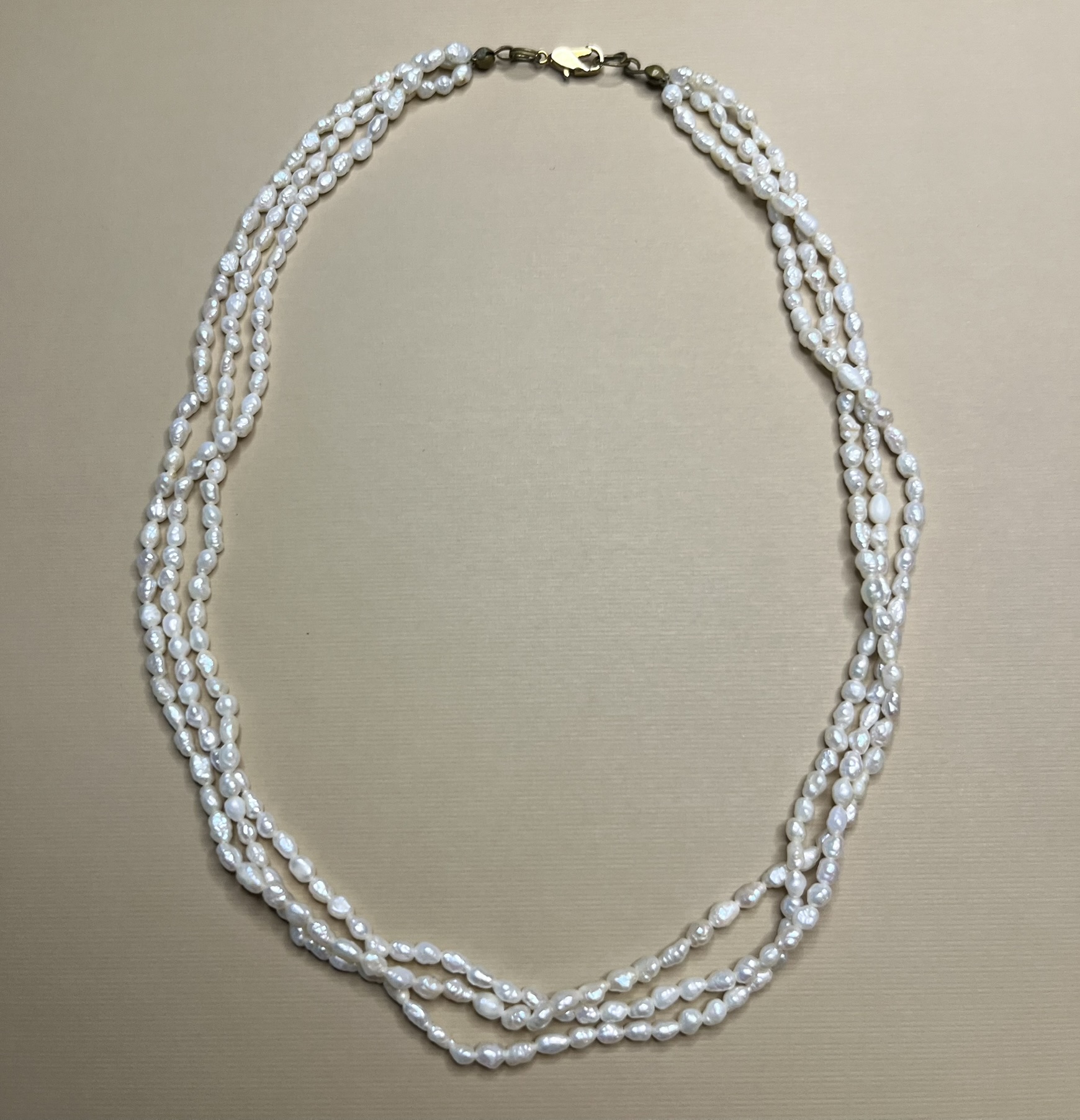 Beautiful vintage pearl necklace. Beautiful ivory color with soft, mixed iridescence when the light catches the pearls. Photos do not do this piece justice.