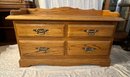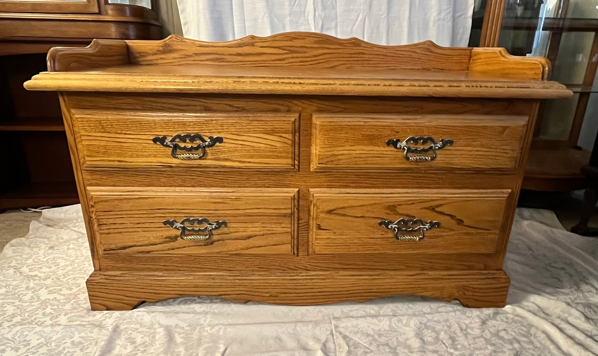 Vintage solid oak hope chest/storage bench with faux-drawer front and 4 pulls. Approx 49"w x 19"dx 25" seat height and 30" back height. Excellent condition, solid wood, just minor scratches on top.