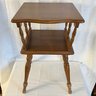 Vintage/antique maple wood 2-tier end table Approx 16"w x 17.5"d x 24"h. Lovely wood and style. See photos for condition.