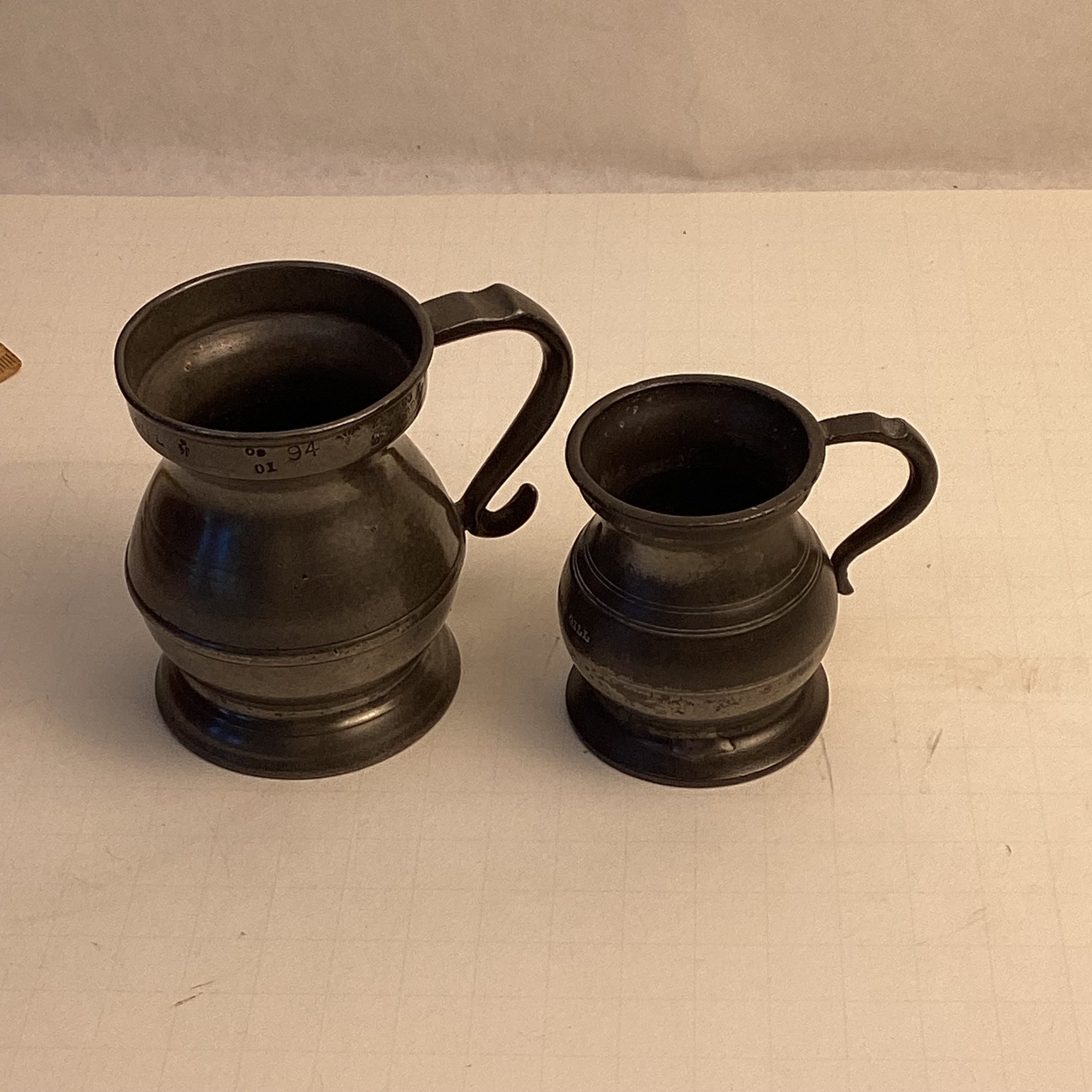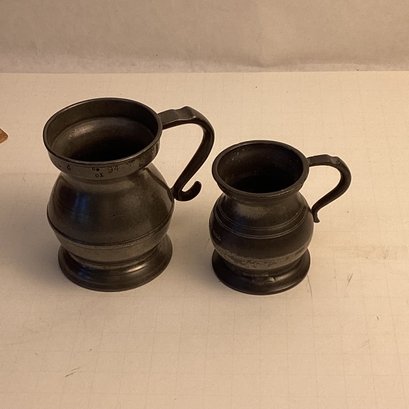 2 Pc Antique Pewter Small Pitchers, Birmingham England, GILL