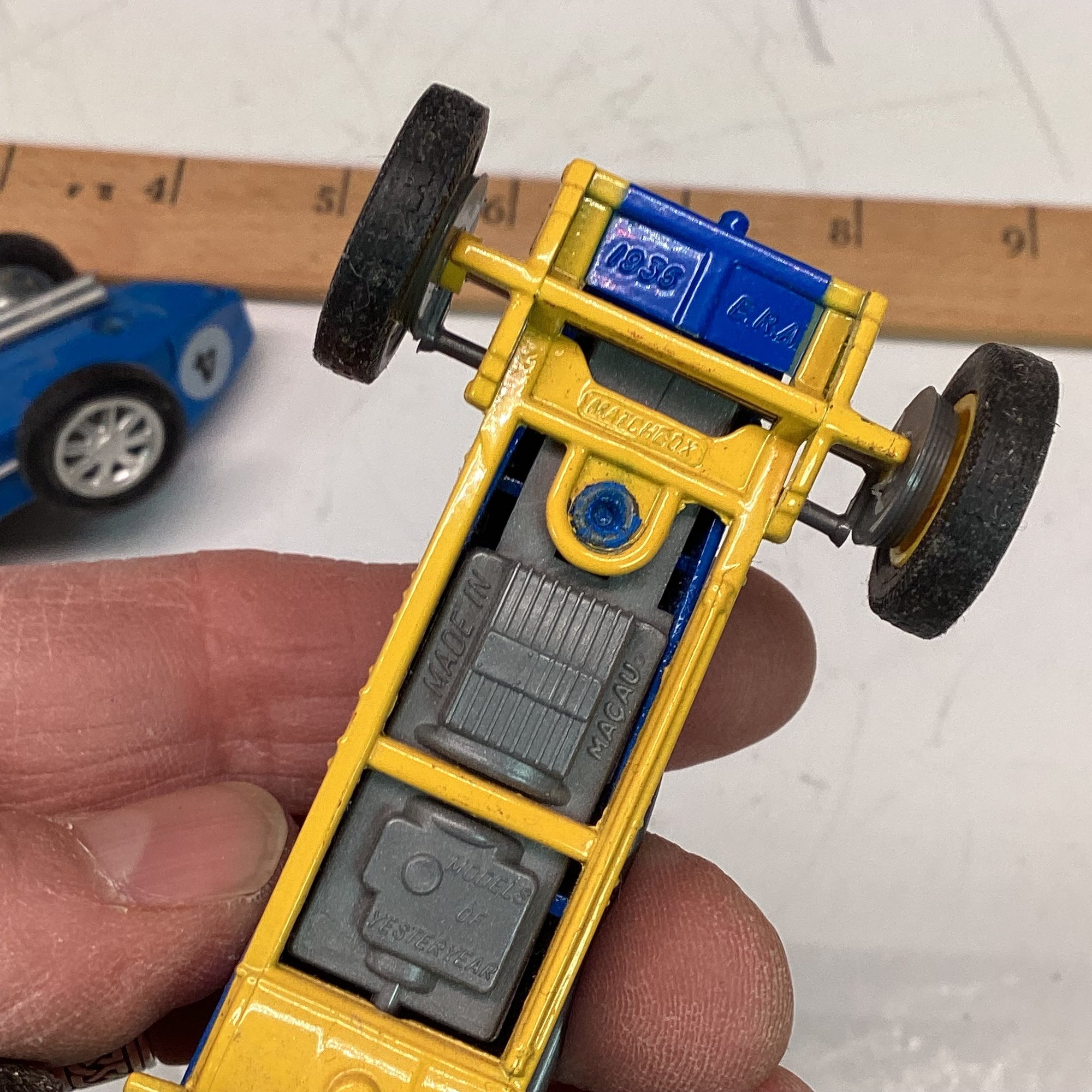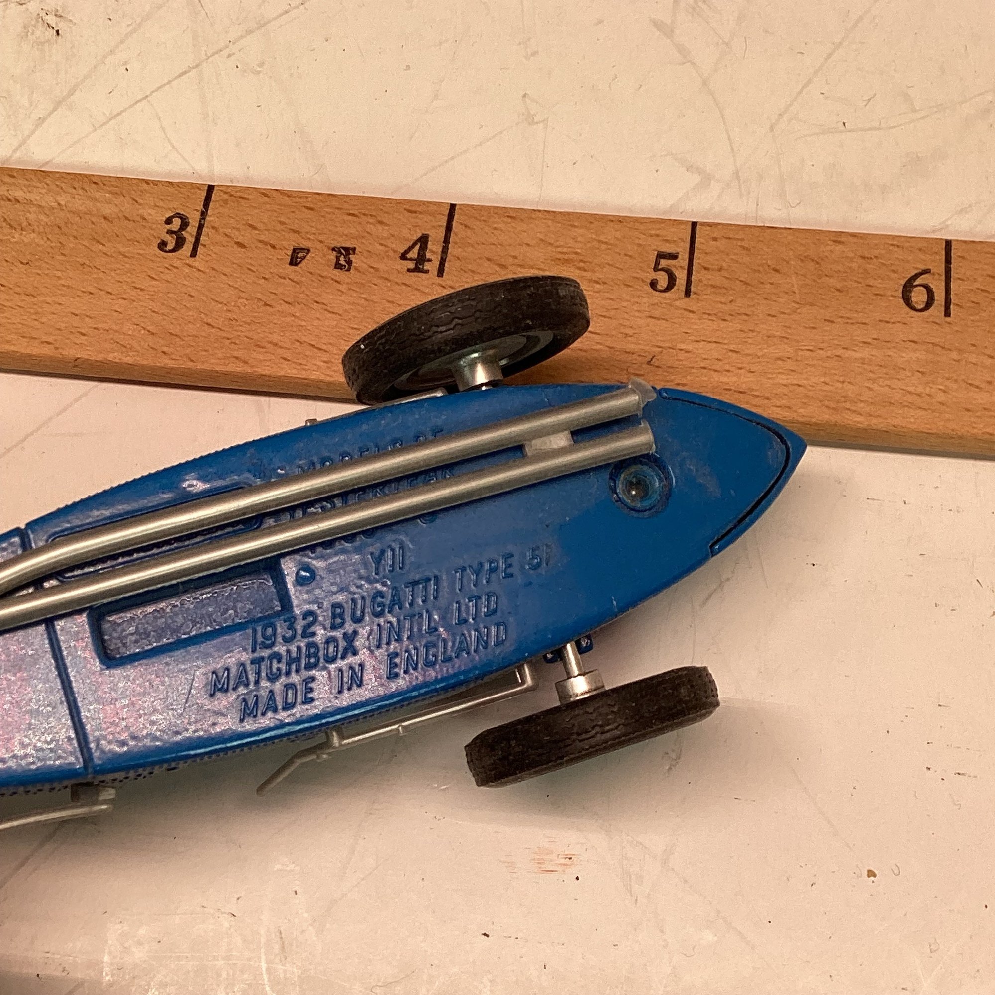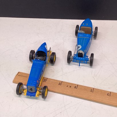 2 Small Blue Race Cars, Matchbox Bugatti, Matchbox Yesteryear