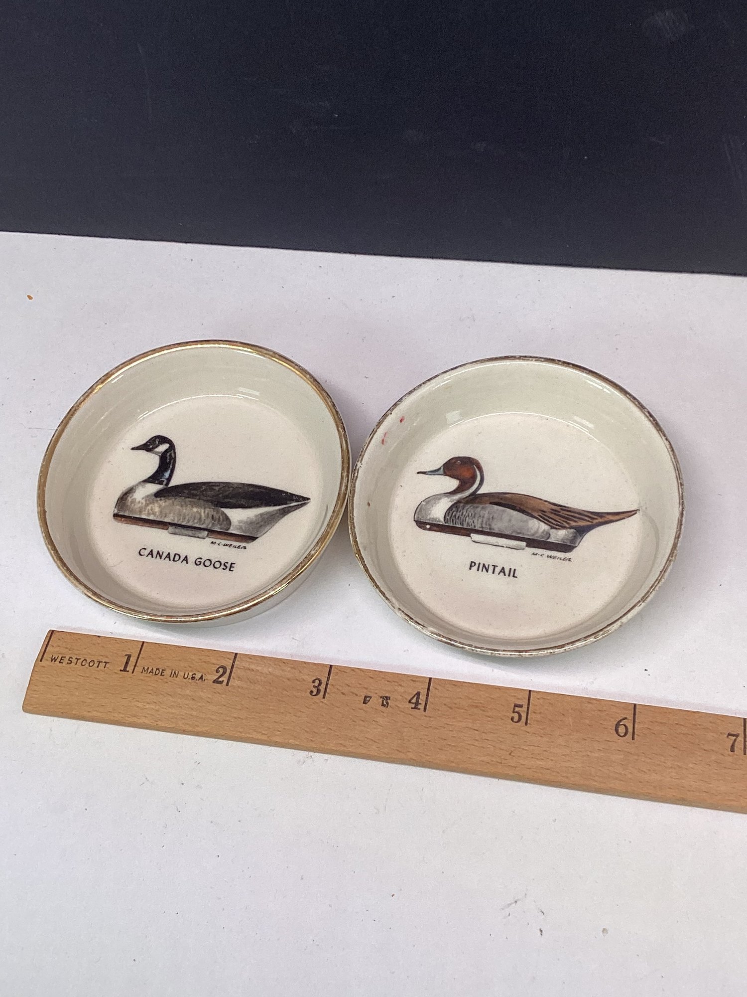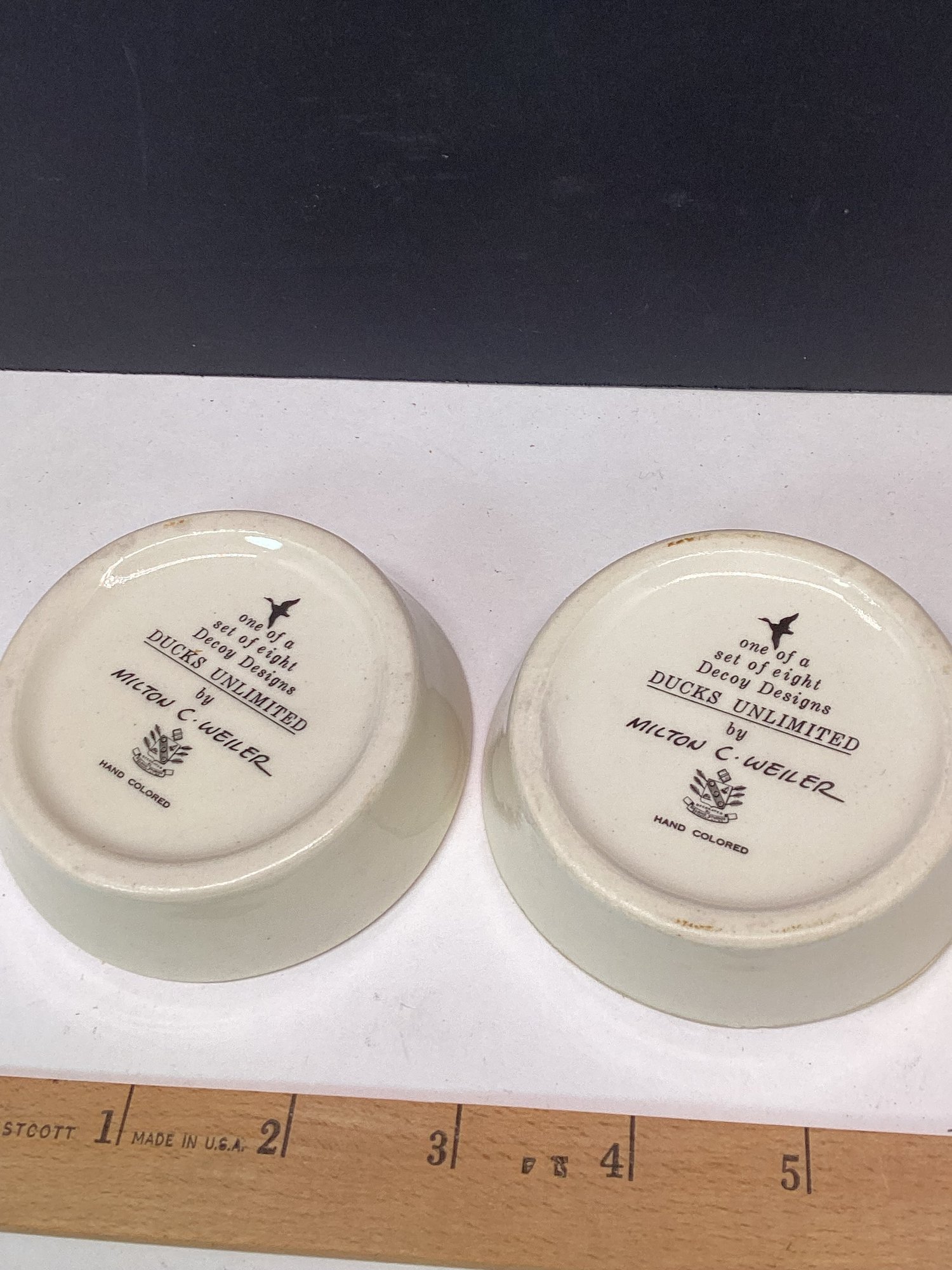 2 Vintage Ducks Unlimited Ceramic Butter Pat Dishes, Trinket Dishes