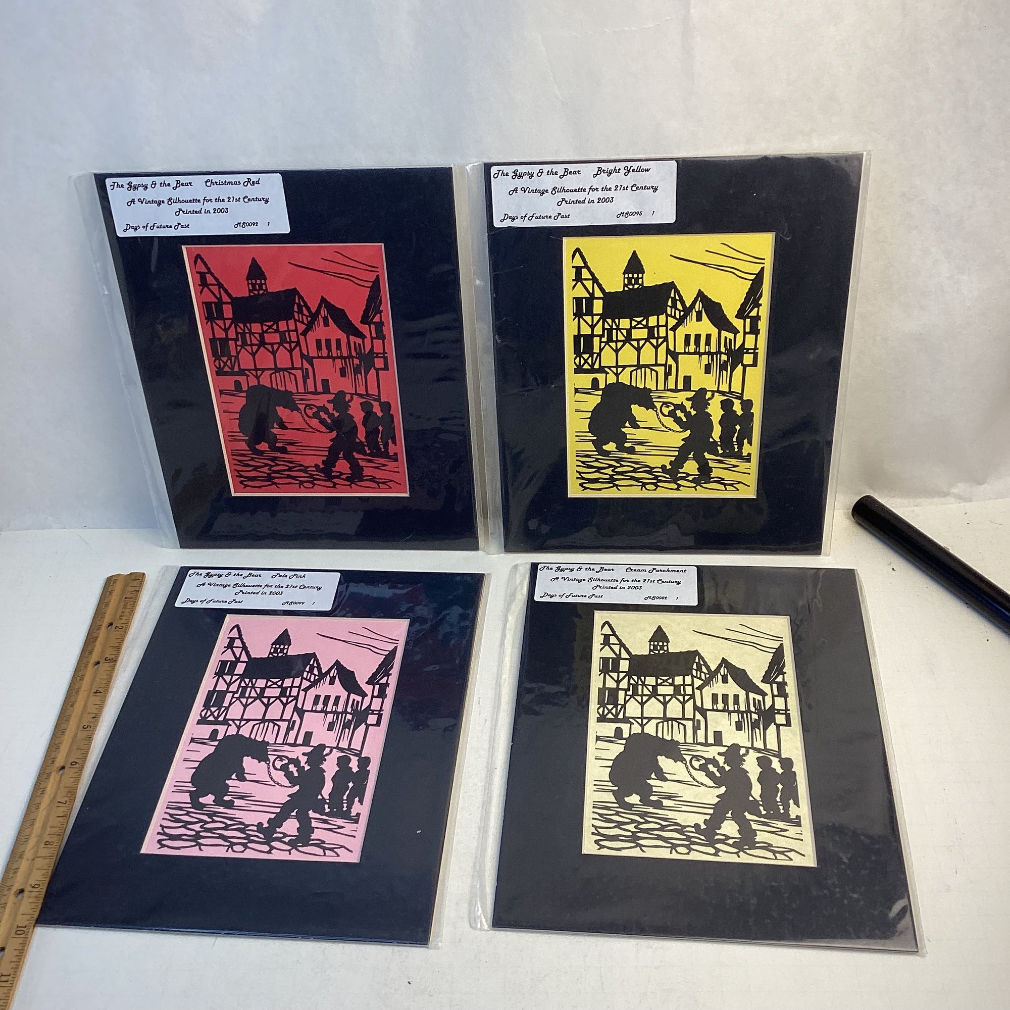 4 Vintage Matted Woodblock Prints From Local Artist, Gypsy And The Bear