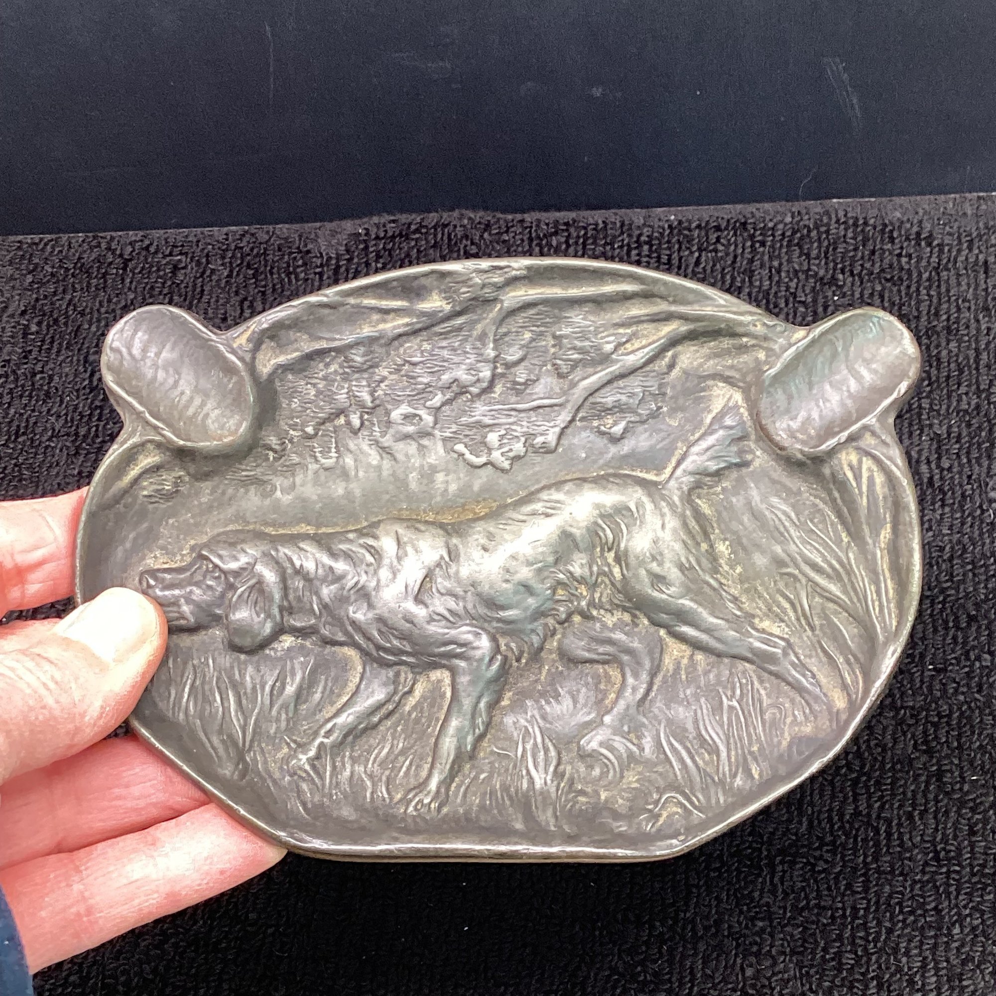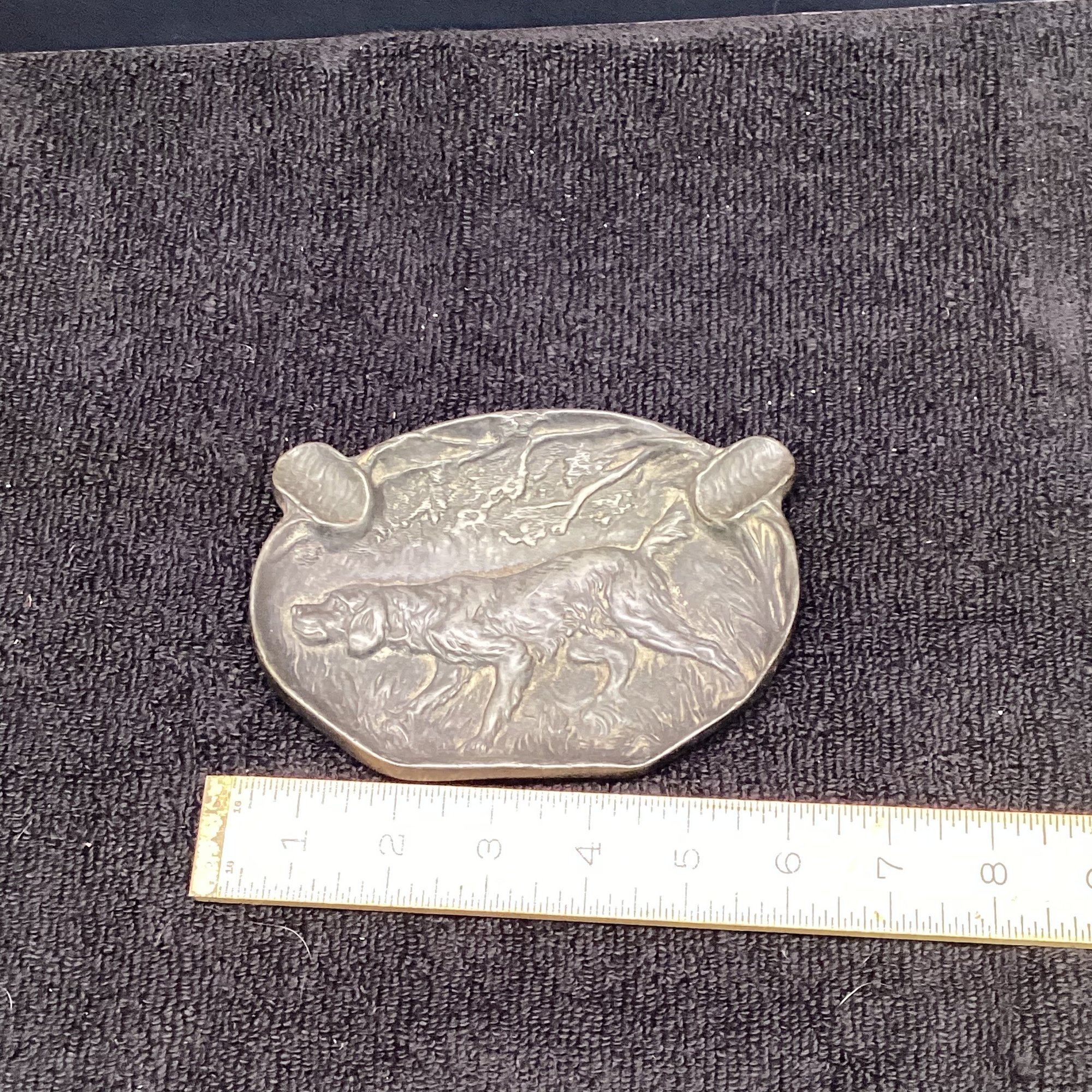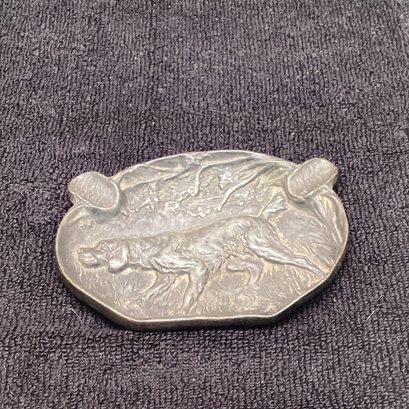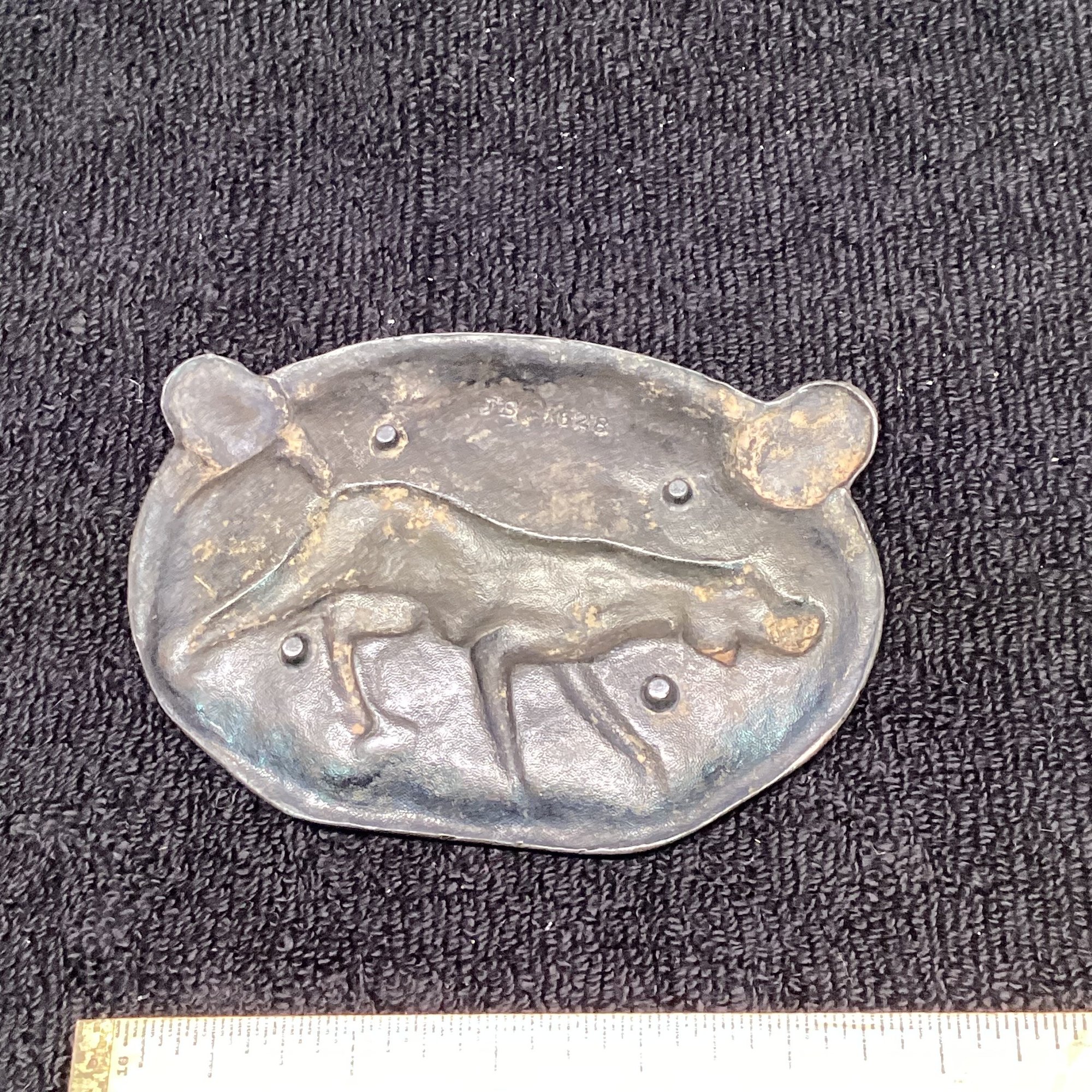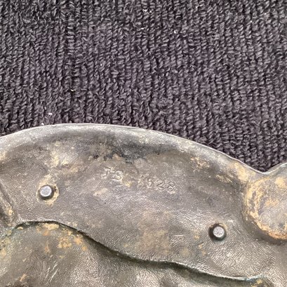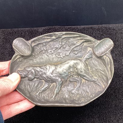 Antique Metal Raised Relief Dog Ashtray, JS 1928